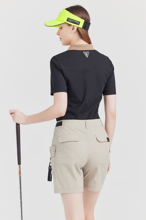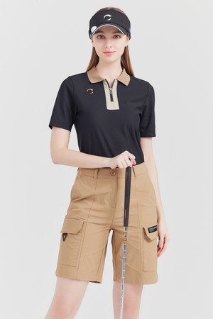 PQ조직 냉감소재 카라넥 배색 여성 골프 반팔티셔츠 블랙