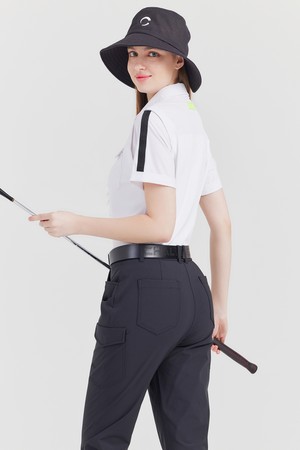 PQ조직 우븐믹스 소매테잎 카라넥 여성 골프 반팔티셔츠 화이트