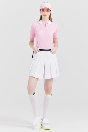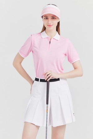기능성PQ 카라배색 집업 변형어깨 여성 골프 반팔티셔츠 핑크