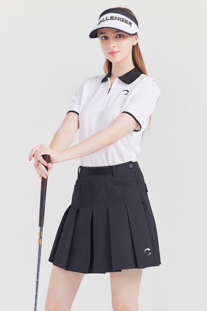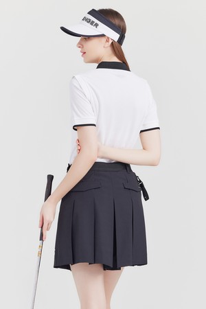 기능성PQ 카라배색 집업 변형어깨 여성 골프 반팔티셔츠 화이트