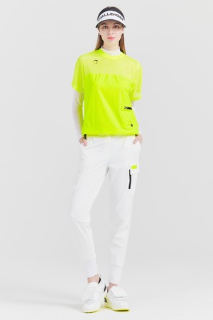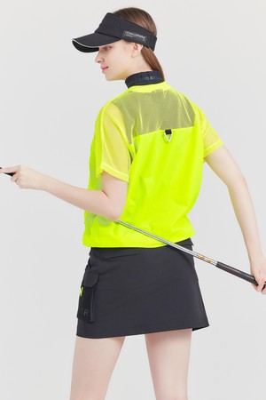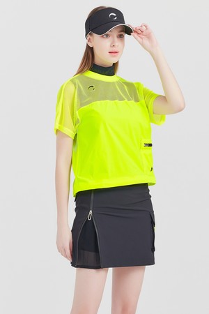 상단 저지메쉬 라운드넥 여성 골프 반팔티셔츠 네온그린