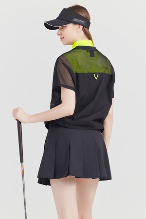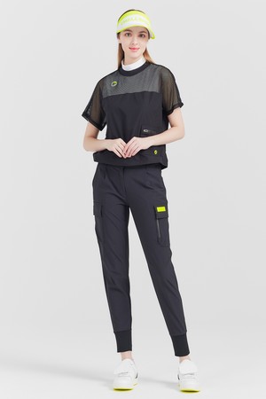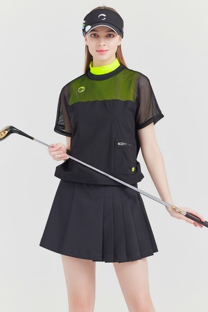 상단 저지메쉬 라운드넥 여성 골프 반팔티셔츠 블랙