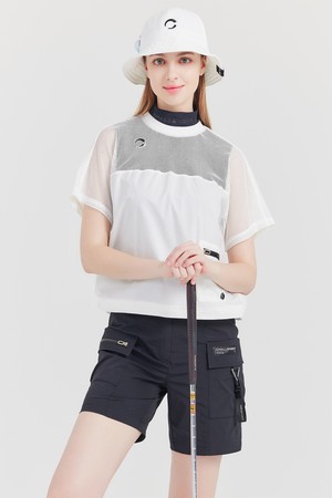 상단 저지메쉬 라운드넥 여성 골프 반팔티셔츠 화이트