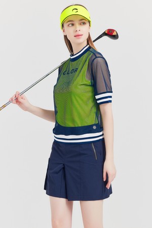 CLGR 저지메쉬 이너 일체형 여성 골프 반팔티셔츠 네온그린