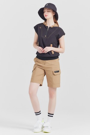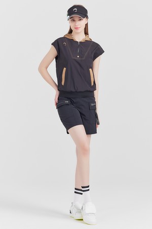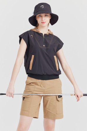 경량 나일론스판 반집업 배색후드 여성 골프조끼 블랙