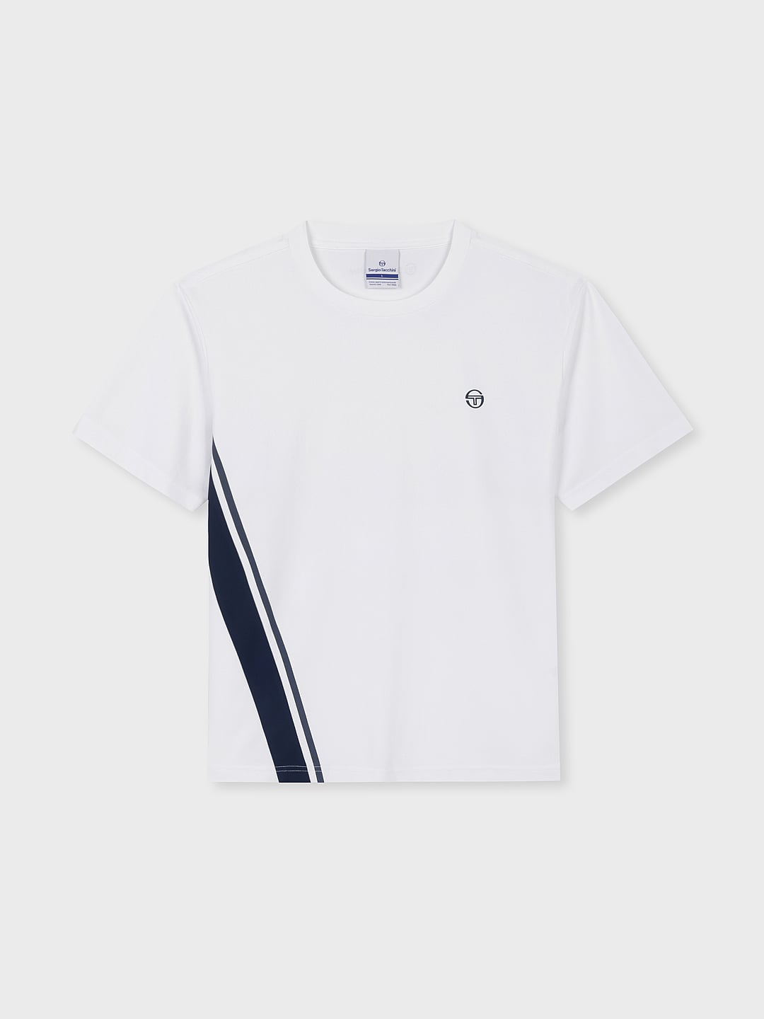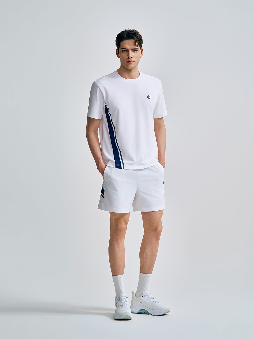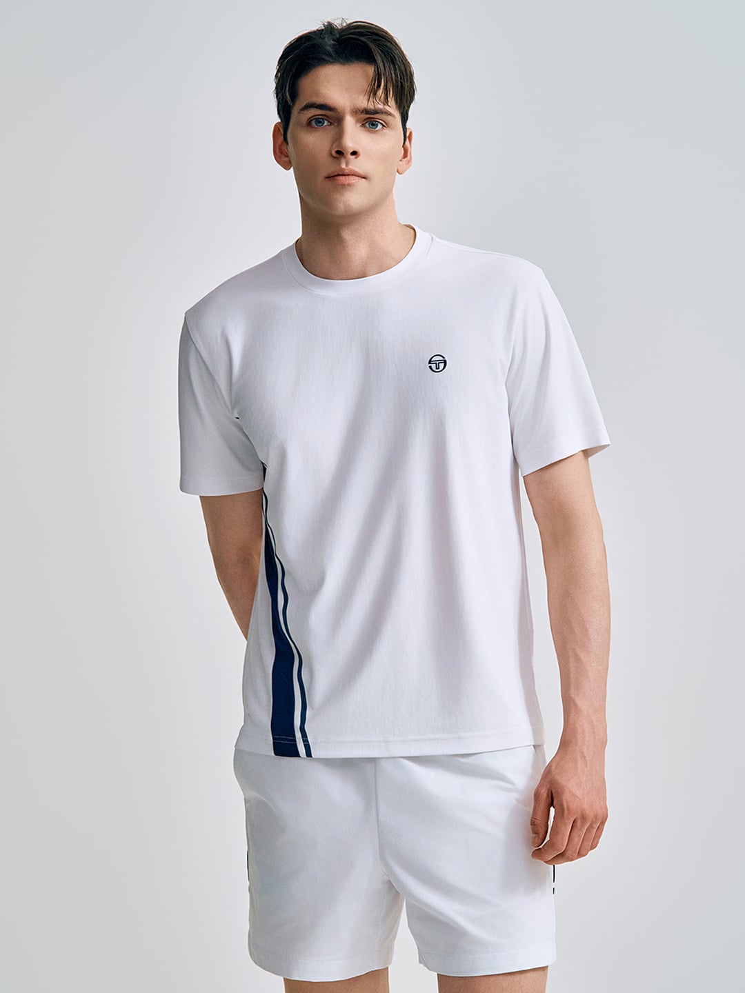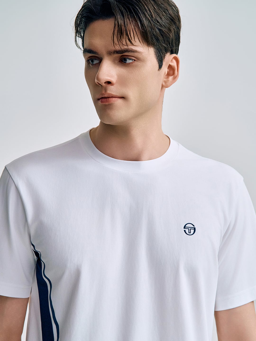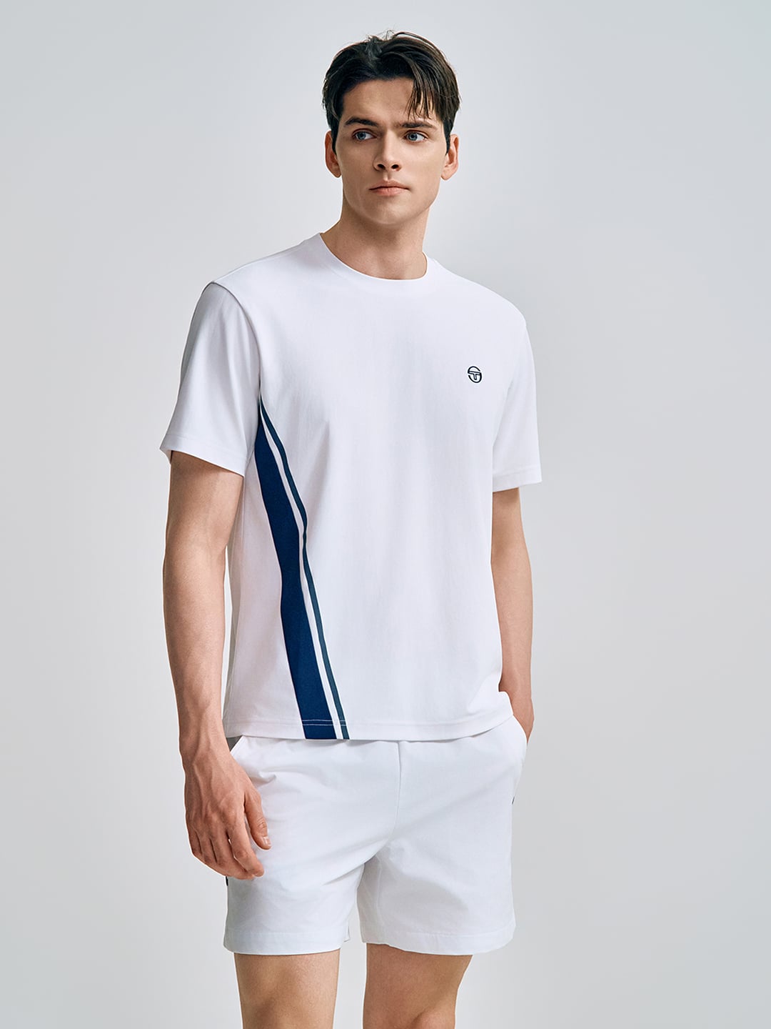 - - 브랜드 헤리티지인 다마린도(Damarindo) 라인 배색으로 스포티하고 클래식한 무드를 강조한 남성 반팔 티셔츠