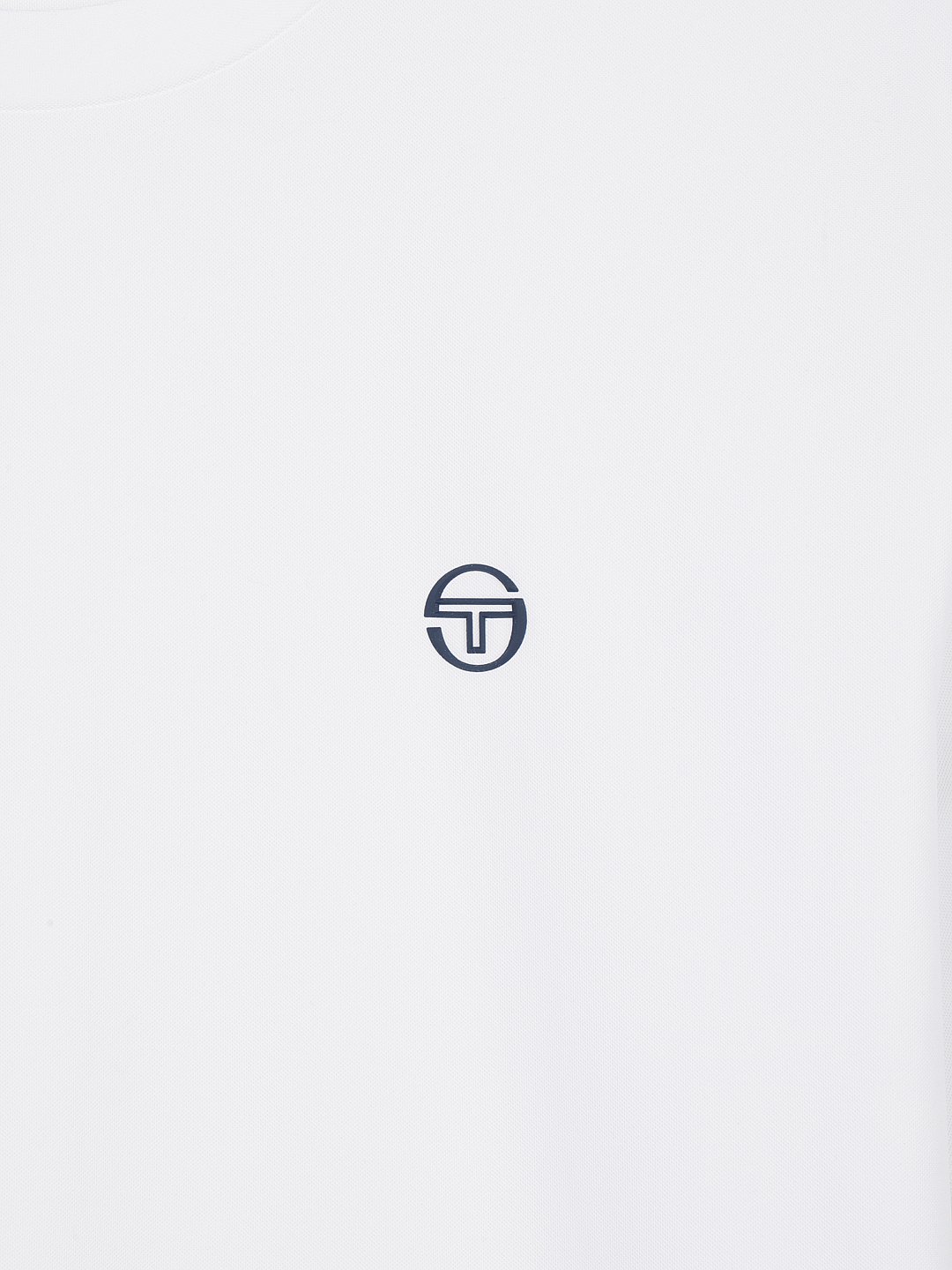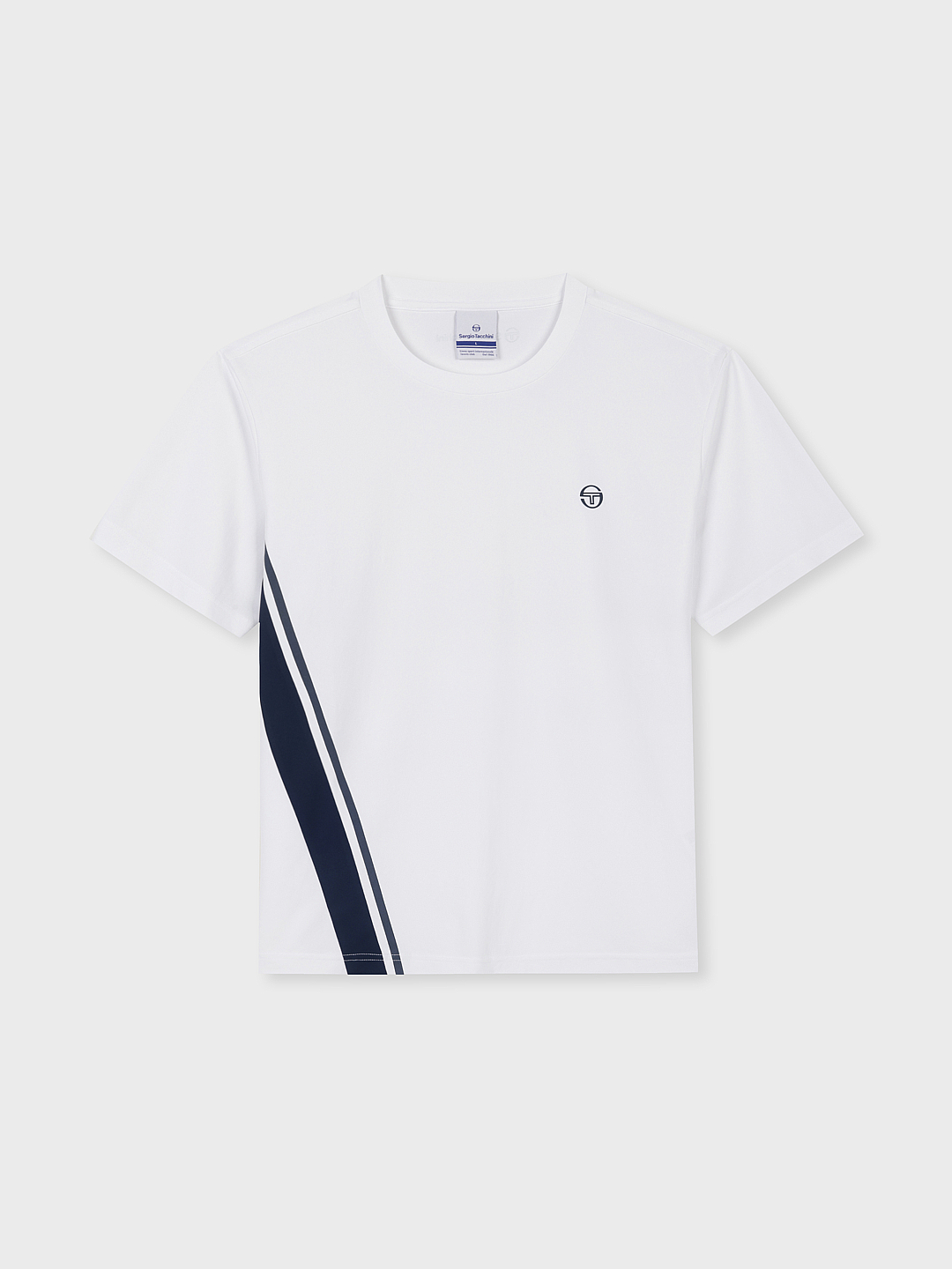 - -- 브랜드 헤리티지인 다마린도(Damarindo) 라인 배색으로 스포티하고 클래식한 무드를 강조한 남성 반팔 티셔츠