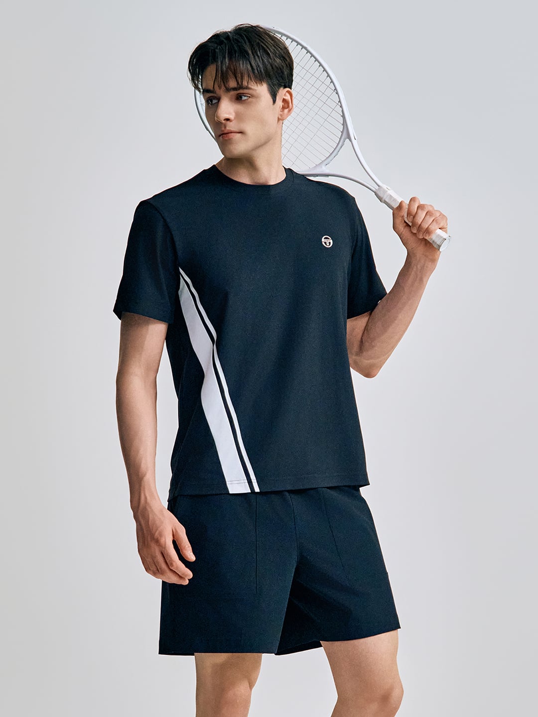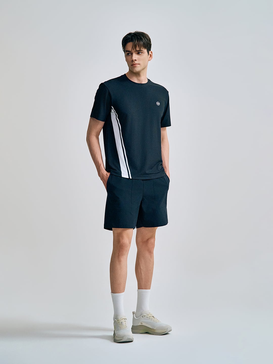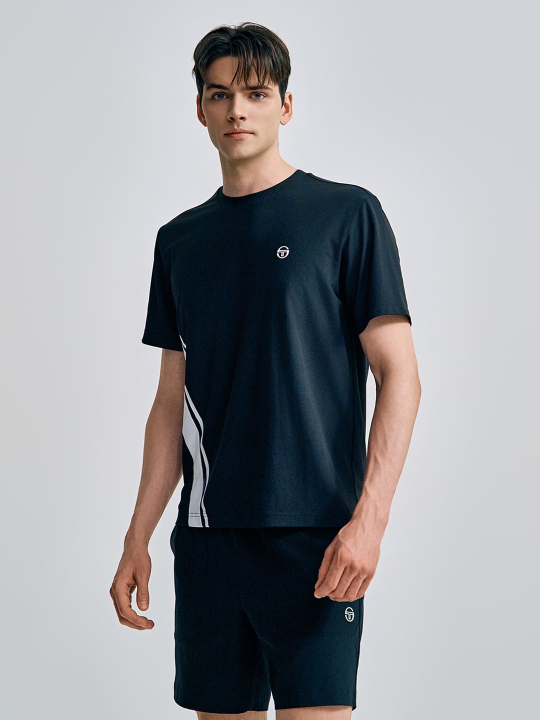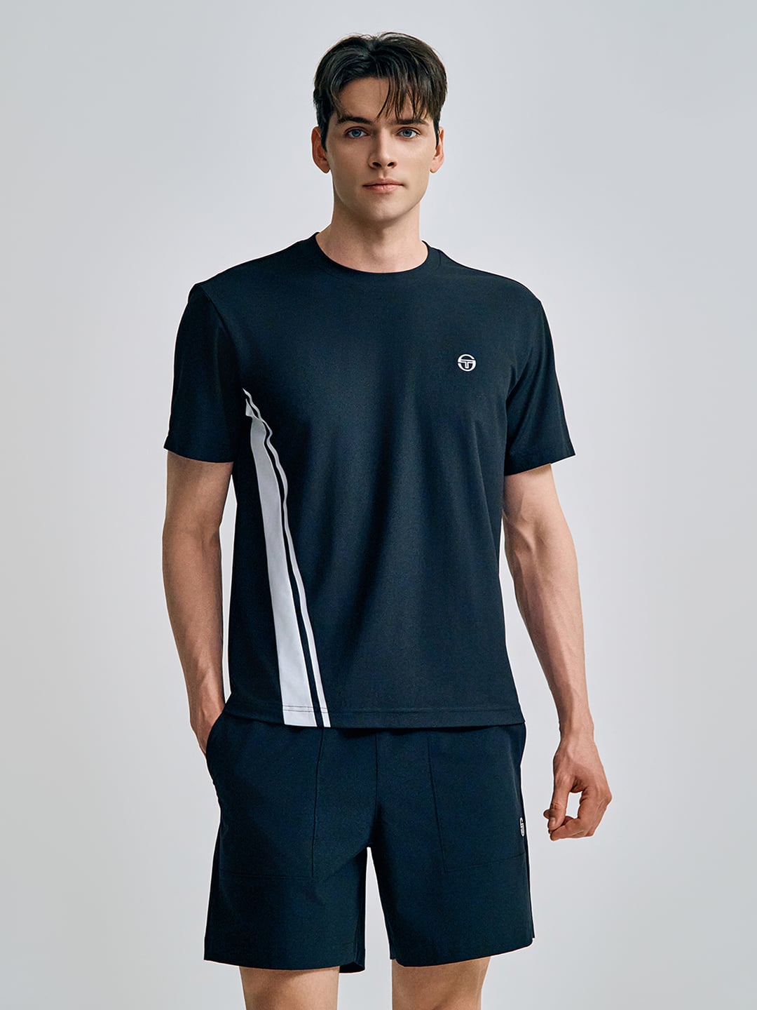 - - 브랜드 헤리티지인 다마린도(Damarindo) 라인 배색으로 스포티하고 클래식한 무드를 강조한 남성 반팔 티셔츠