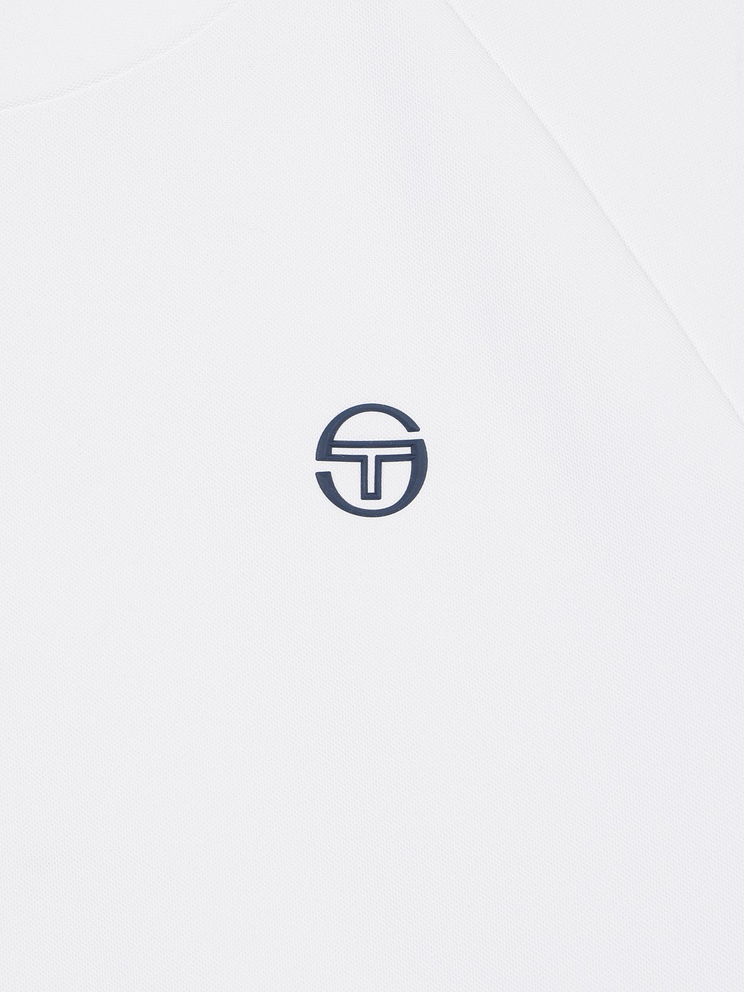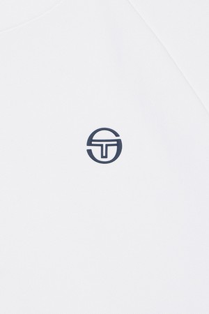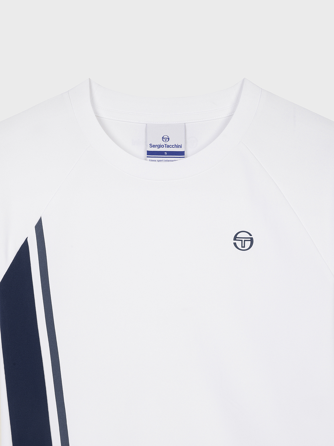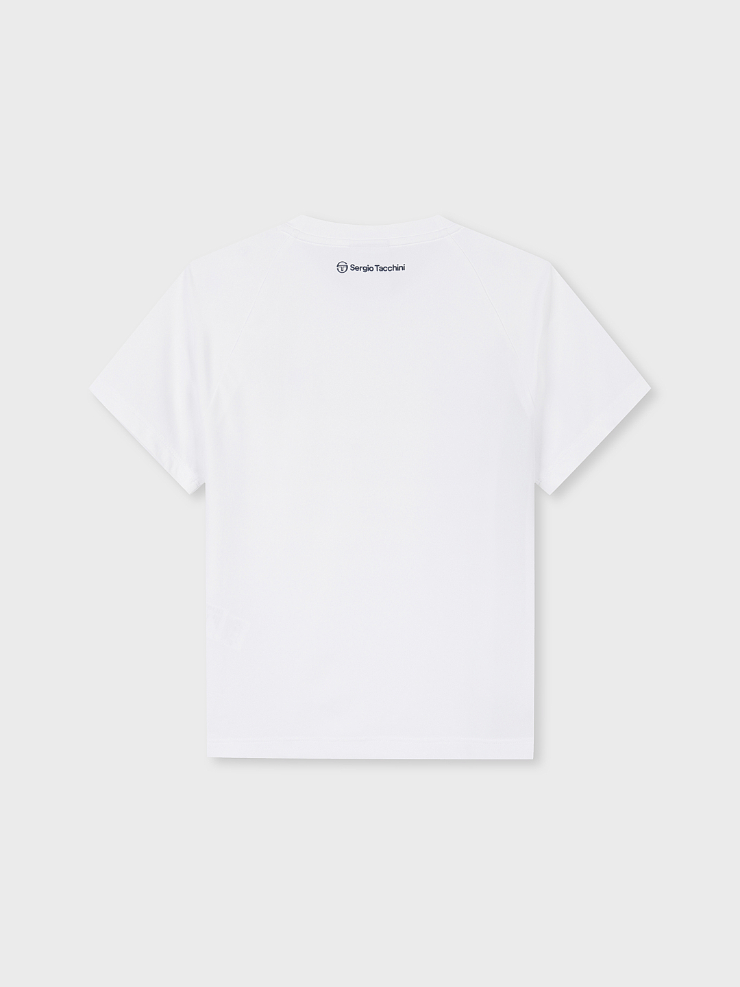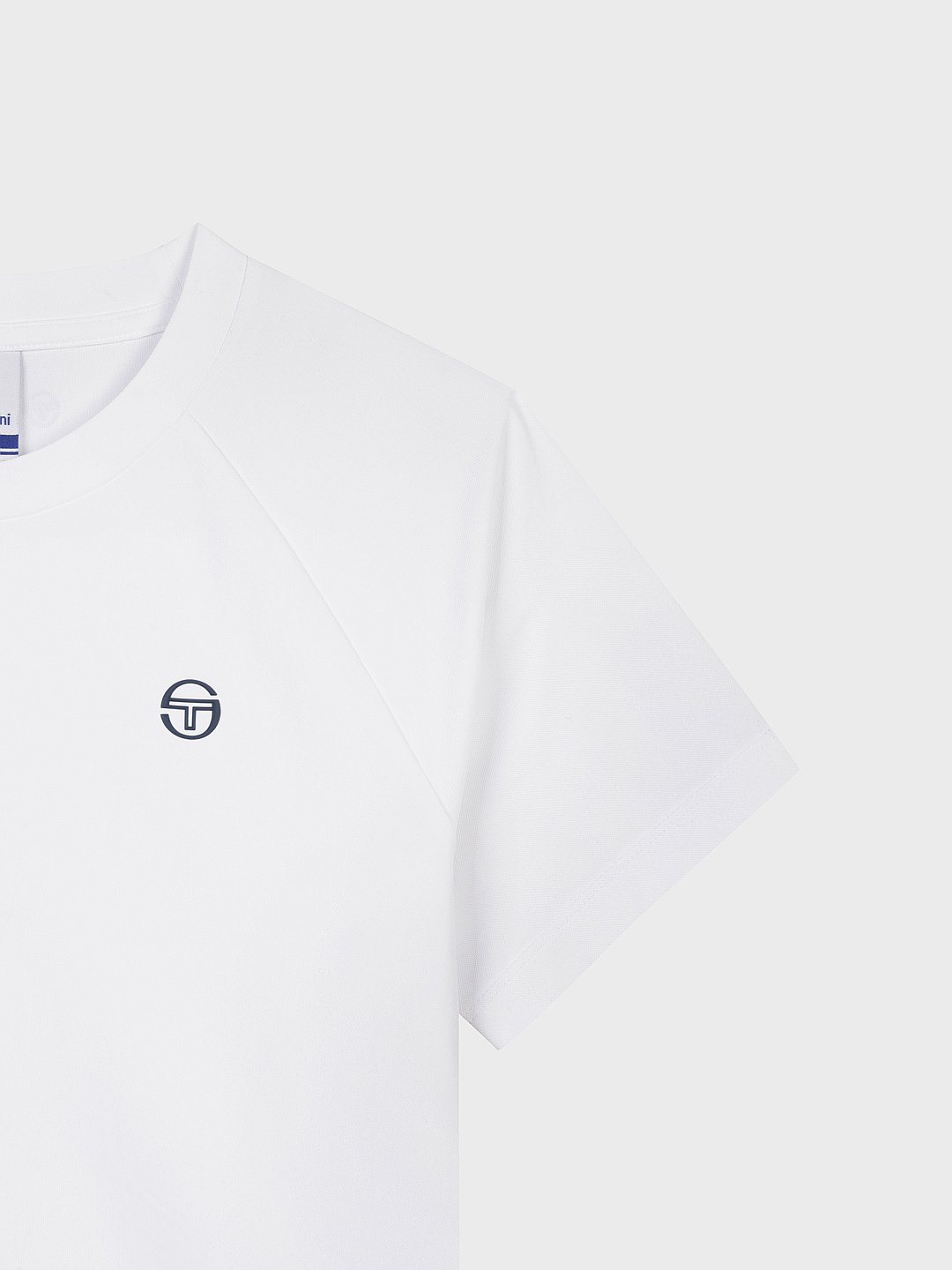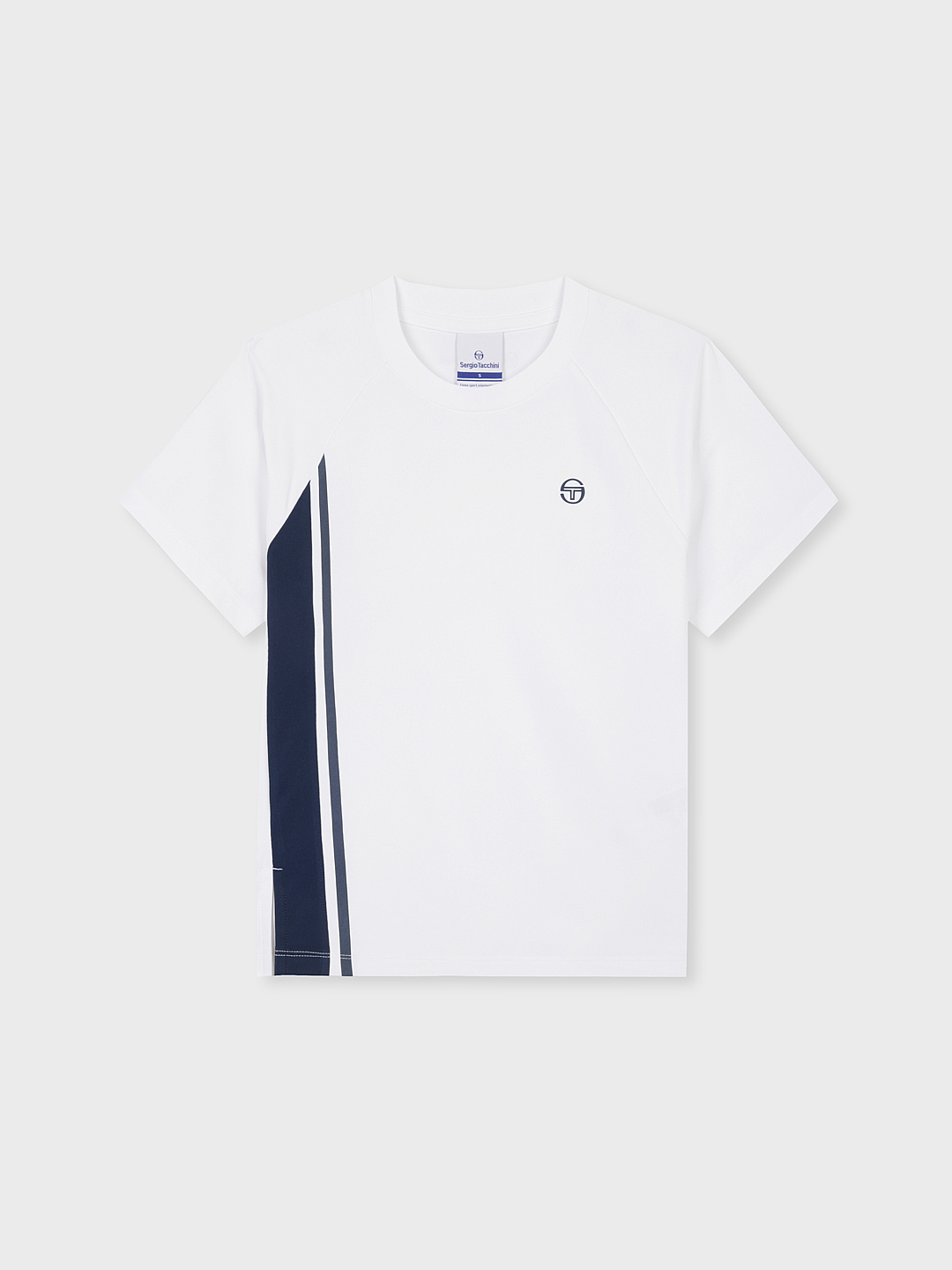 - -- 브랜드 헤리티지인 다마린도(Damarindo) 라인 배색으로 스포티하고 클래식한 무드를 강조한 여성 반팔 티셔츠