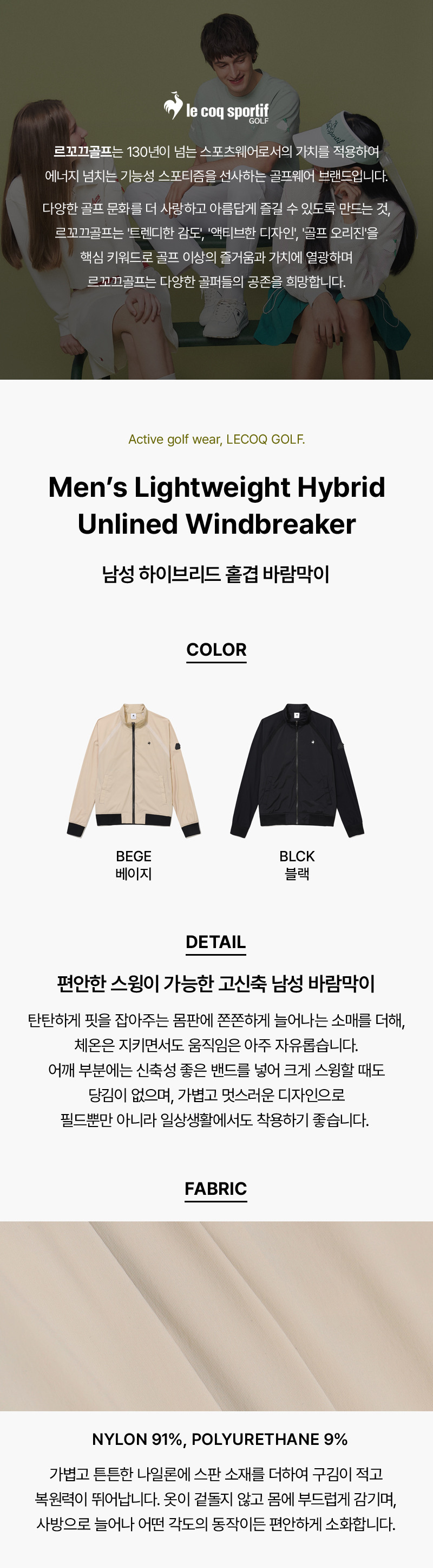 [COQ ATTI TAB] 남성 하이브리드 홑겹 바람막이 블랙 GR121MBL22