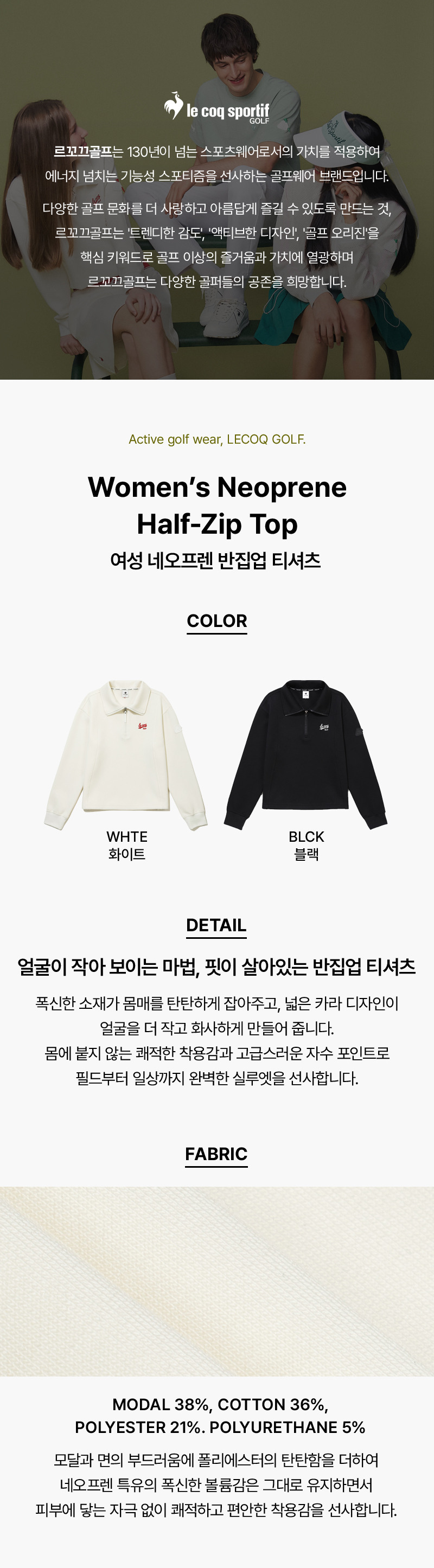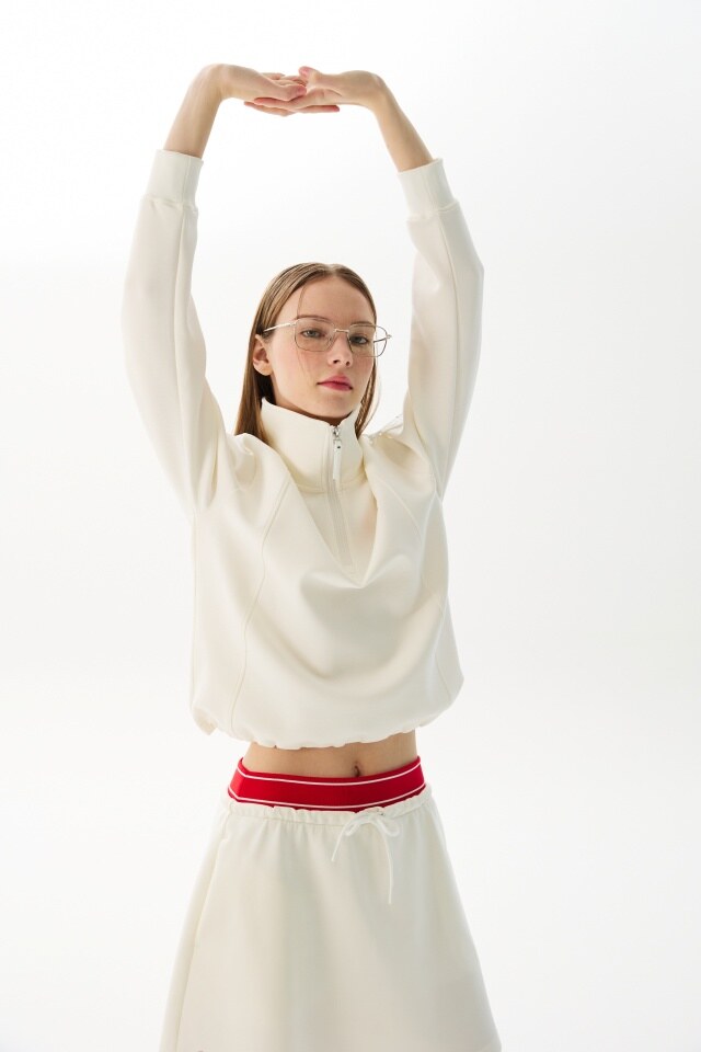 [COQ ATTI TAB] 여성 네오프렌 반집업 티셔츠 화이트 GR122LRL12