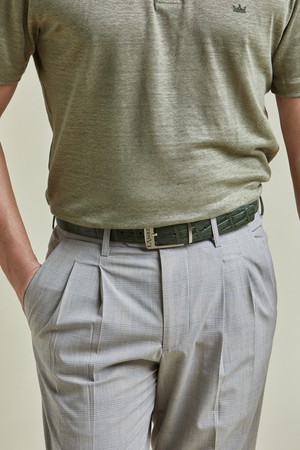 람다 남성 레더벨트 크로커 올리브크레스트 26901 길이조절가능 골프벨트 가죽벨트