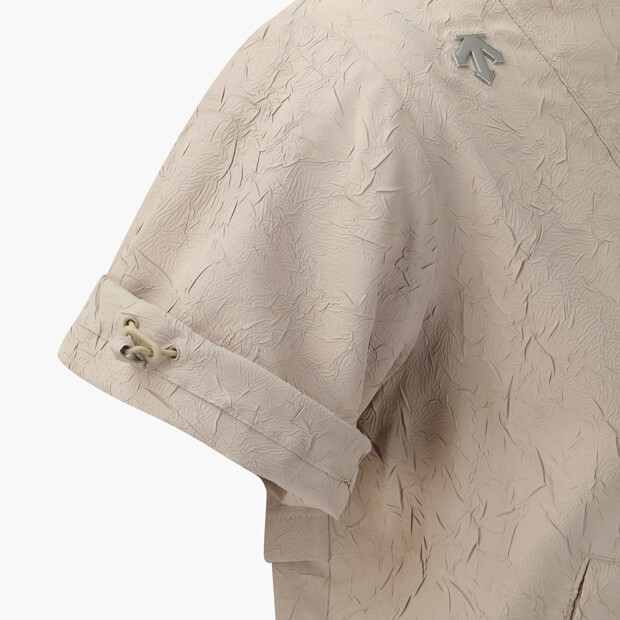 등판의 벤틸레이션 구조가 공기 순환을 도와 한여름에도 쾌적하게 착용할 수 있는 고감도 반팔 점퍼입니다.