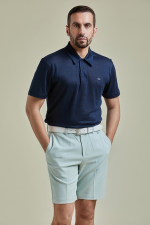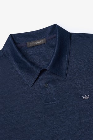 람다 남성 시그니처 리넨 폴로 2버튼 미드나잇네이비 26117 골프 리넨 카라셔츠 반팔