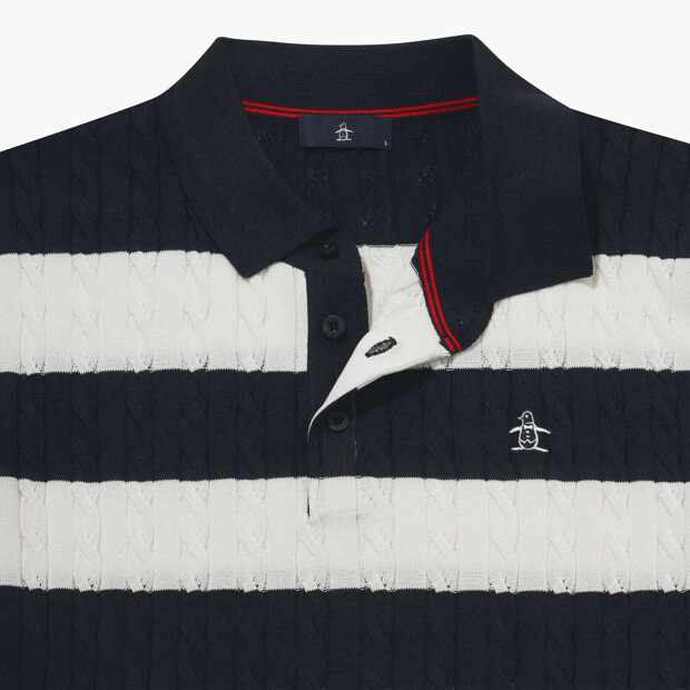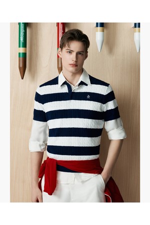 [먼싱웨어] 남성 케이블 반팔 스웨터 다크네이비 MR121MSW31
