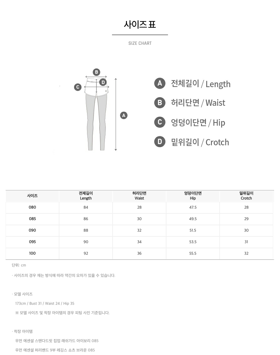 | 소재 | 쇼츠 겉감: 폴리에스터 90%, 폴리우레탄 10% / 레깅스 겉감: 폴리에스터 82%, 폴리우레탄 18% / 레깅스 안감: 폴리에스터 73%, 폴리우레탄 27% |