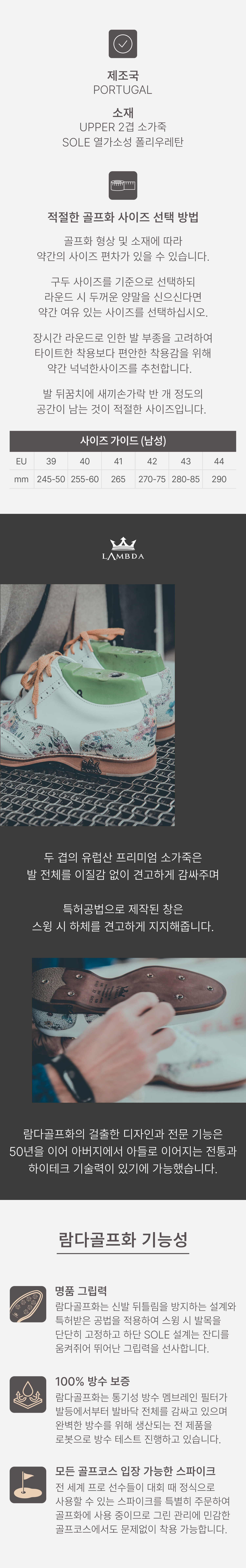 (사전예약) 람다 남성골프화 미겔 MIGUEL V2 샌드스톤그레인 26715 명품 클래식 스파이크리스 스니커즈