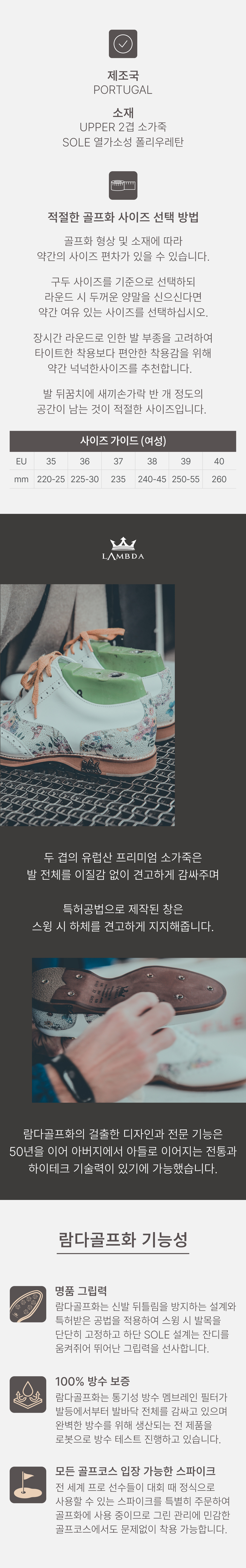 (사전예약) 람다 여성골프화 로아 ROA 샌드베이지(키높이) 26764 명품 클래식 스파이크리스 스니커즈