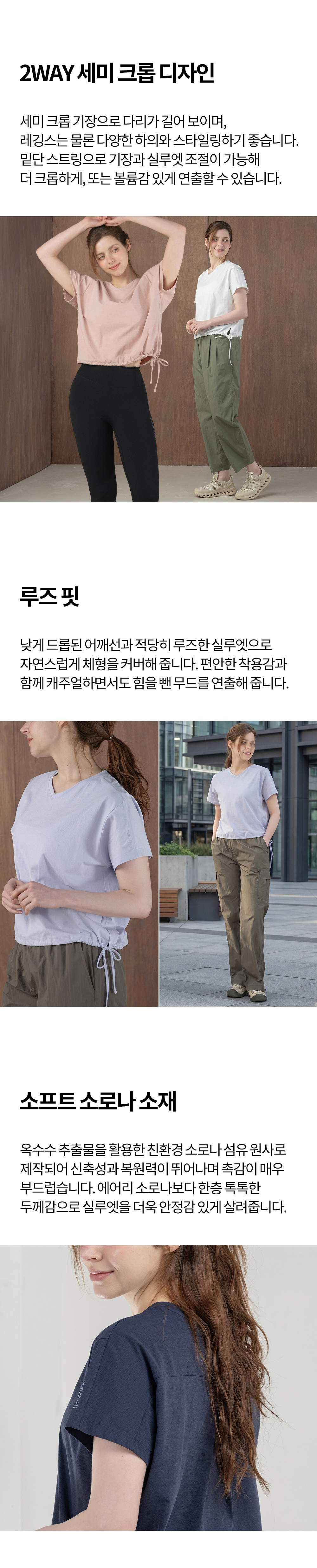 뒤란 소로나 투웨이 세미 크롭 티셔츠 DTF6S-3099 4colors