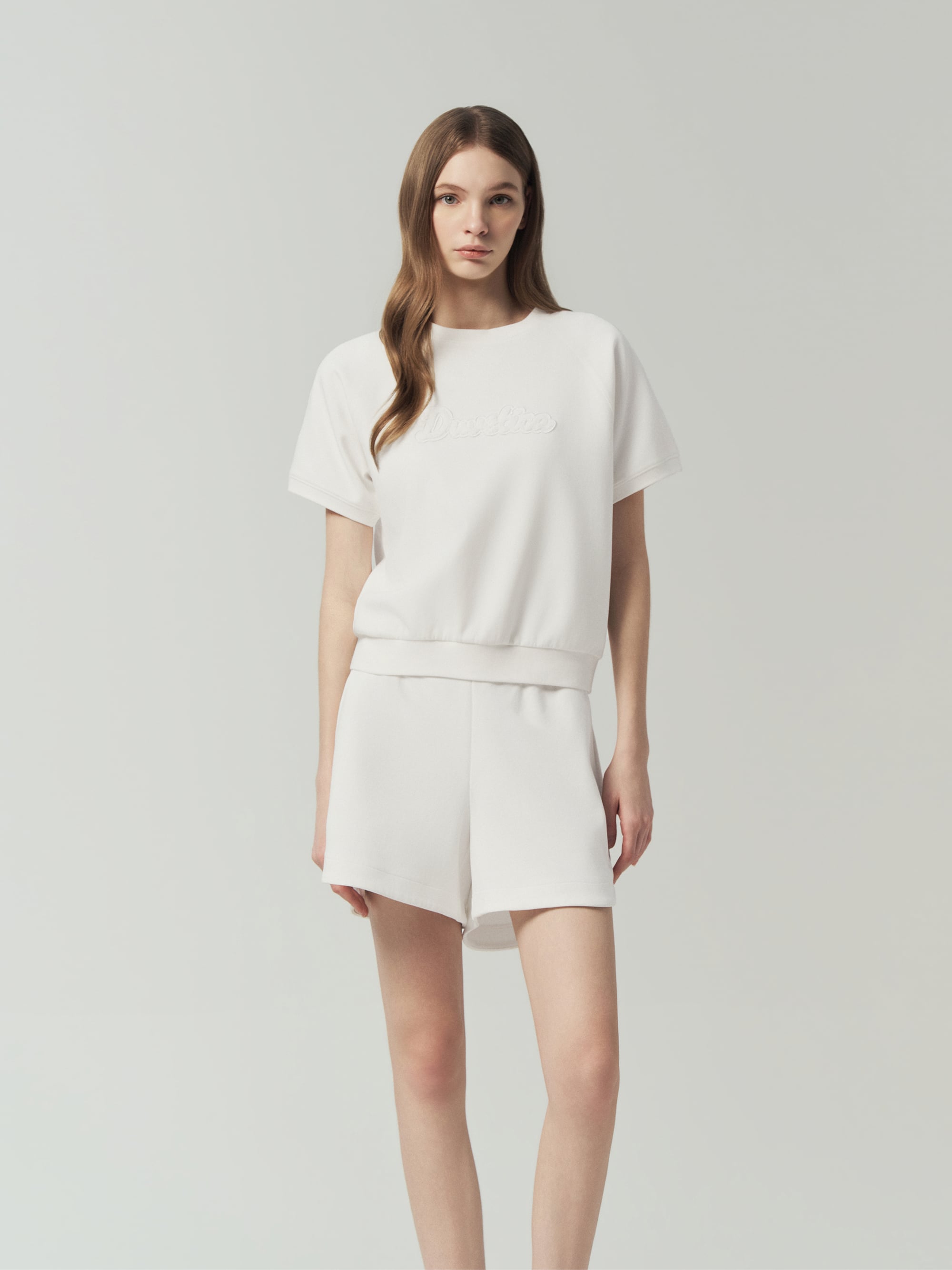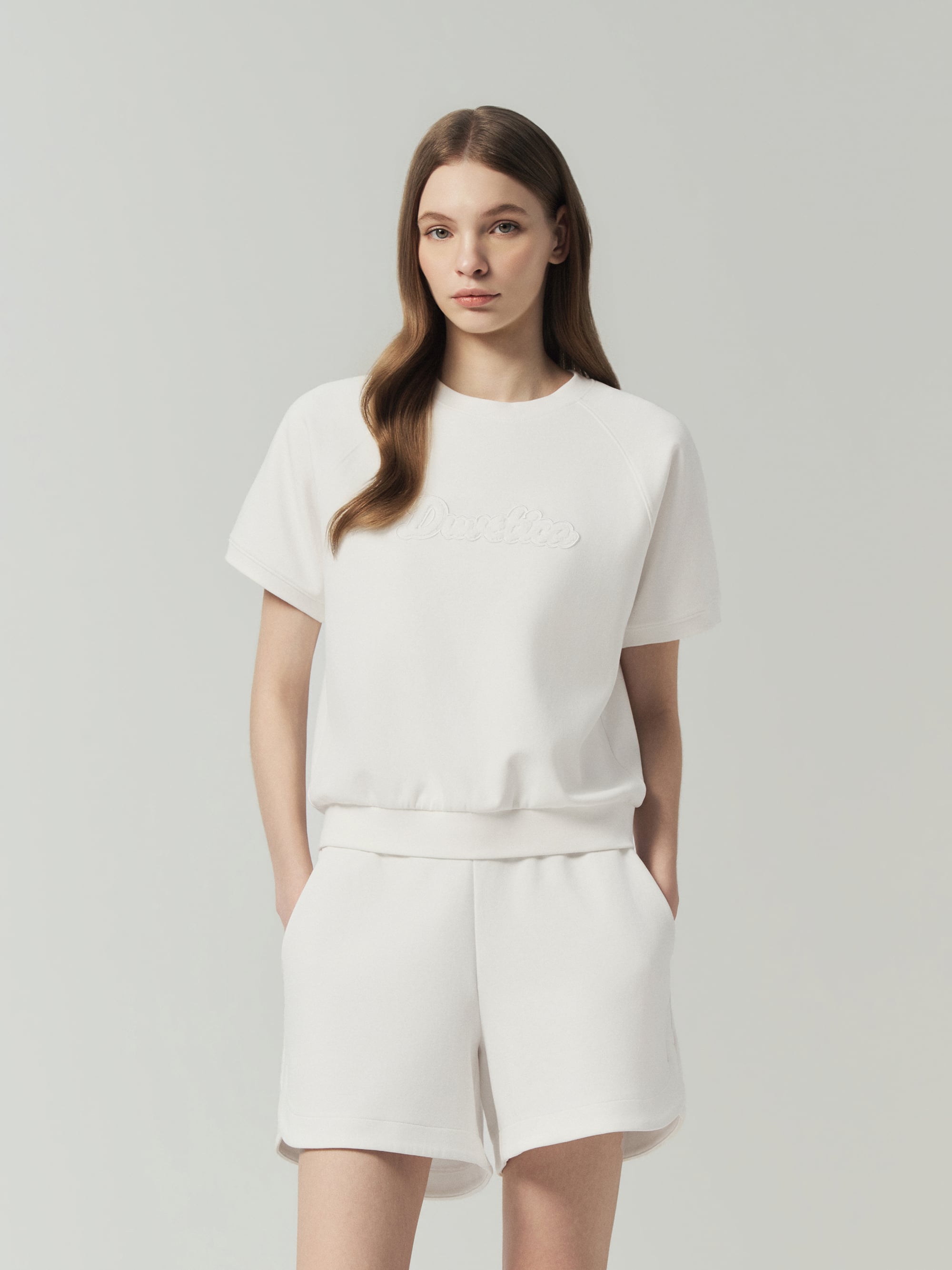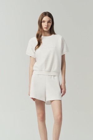 - 브랜드의 시그니처 이중지 소재를 사용한 트레이닝 반팔 맨투맨