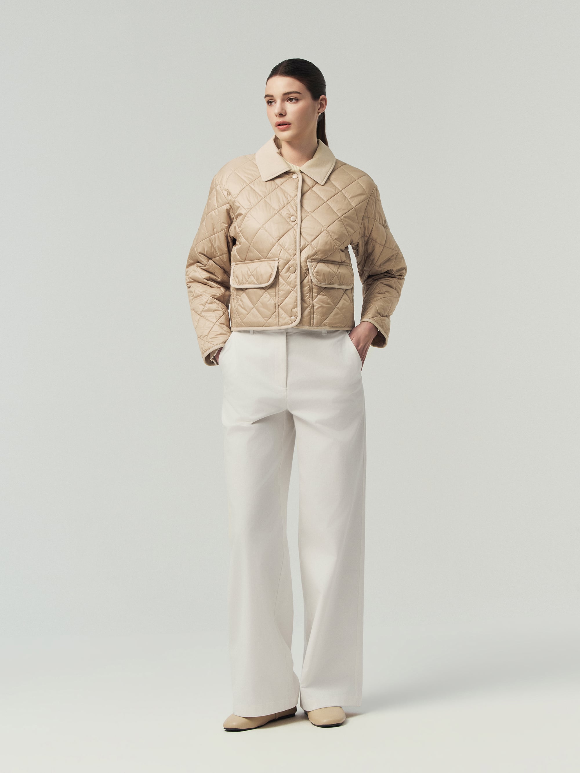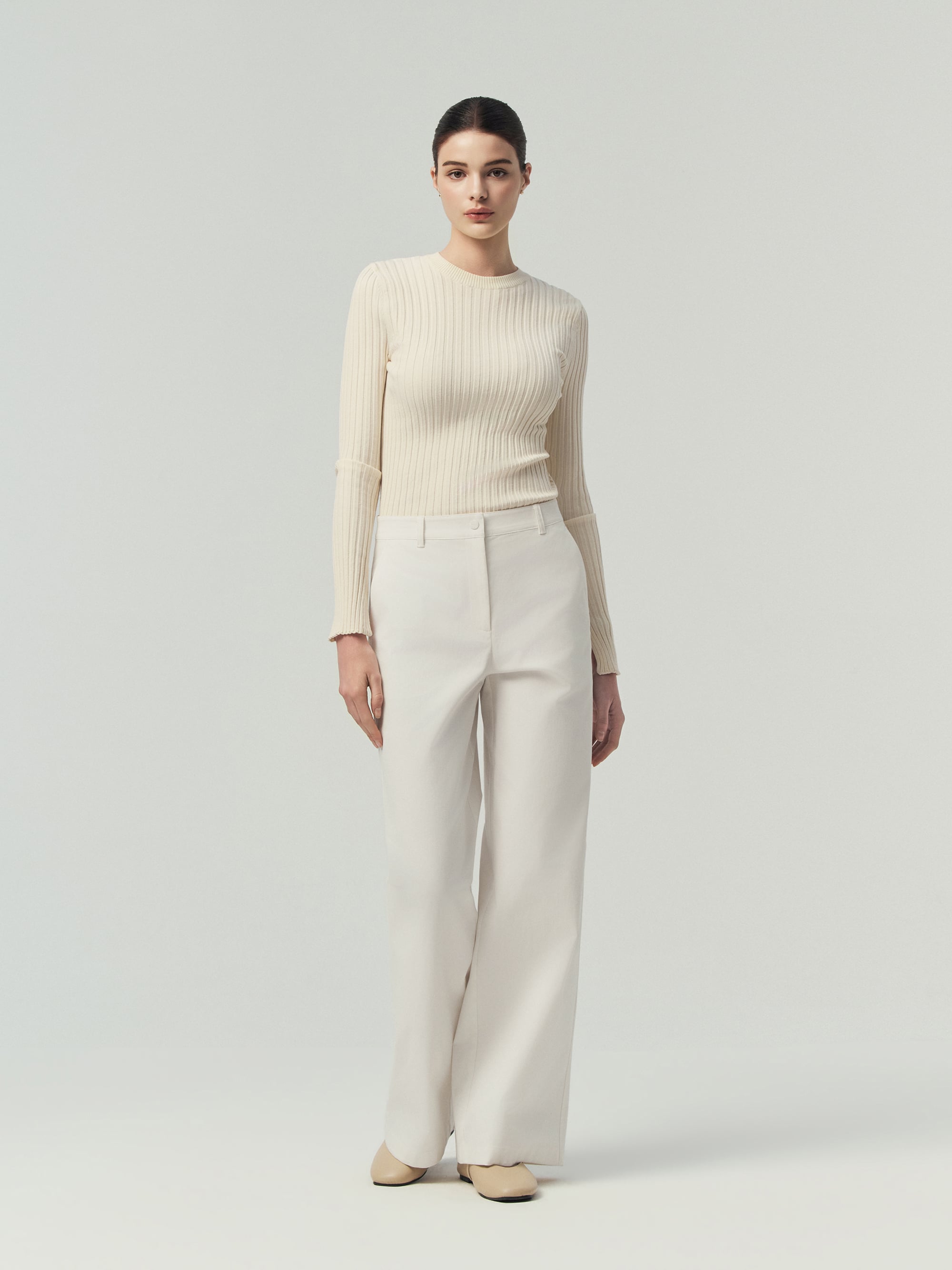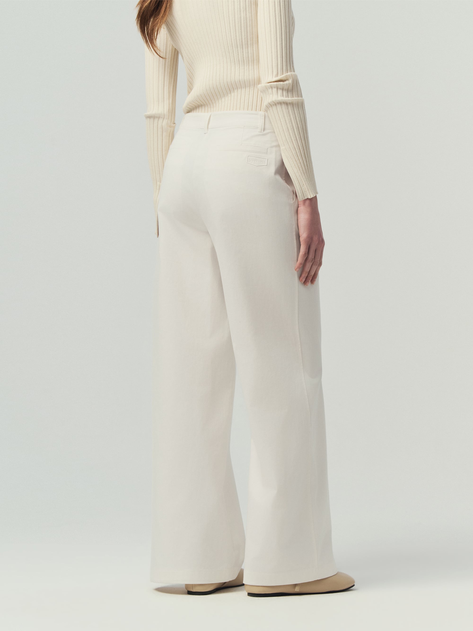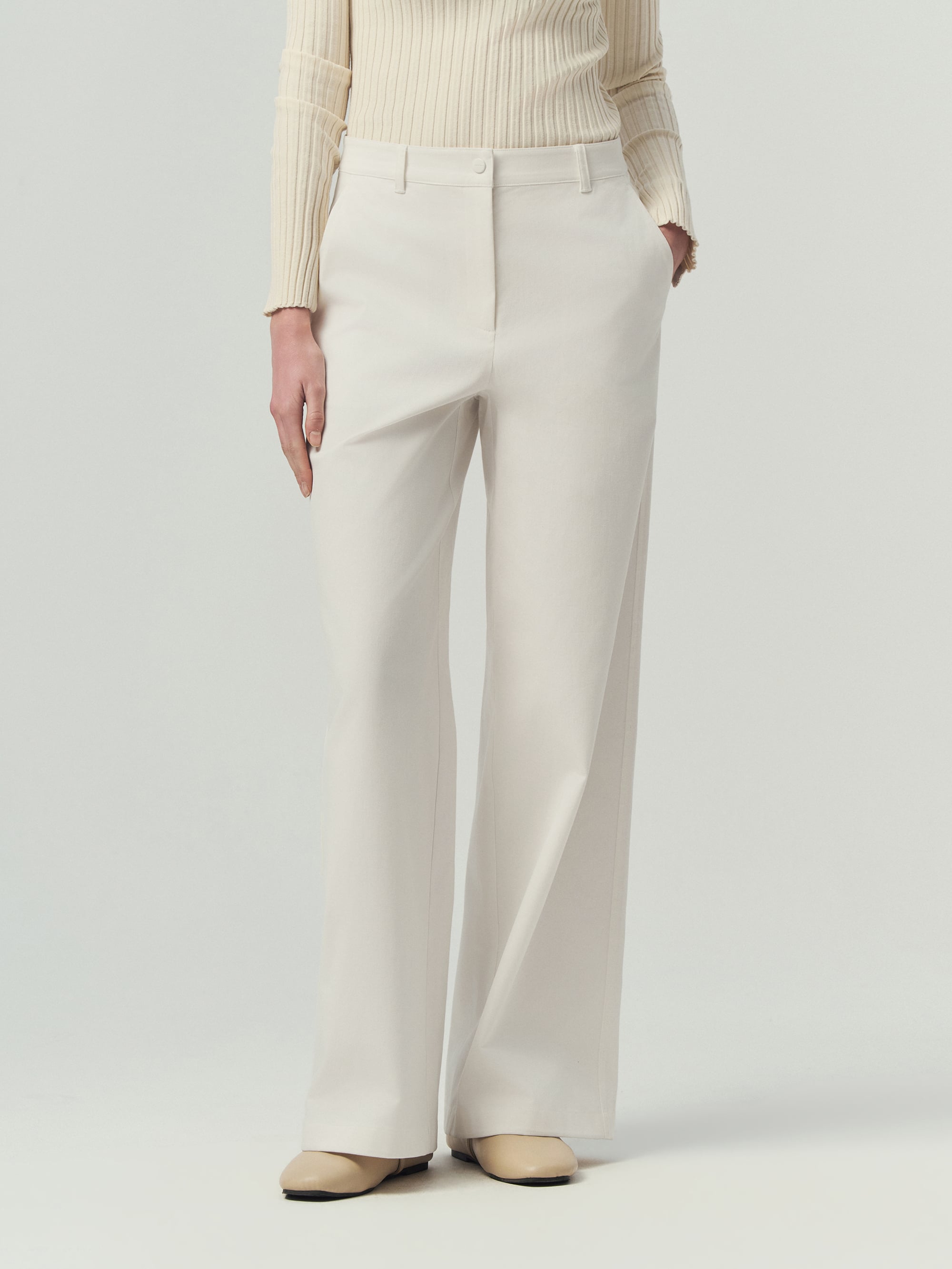 - 탄탄한 조직감의 코튼 터치 소재를 적용했고 와이드하게 드롭되는 실루엣이 체형을 보완해주며 다리가 길어보이는 디자인
