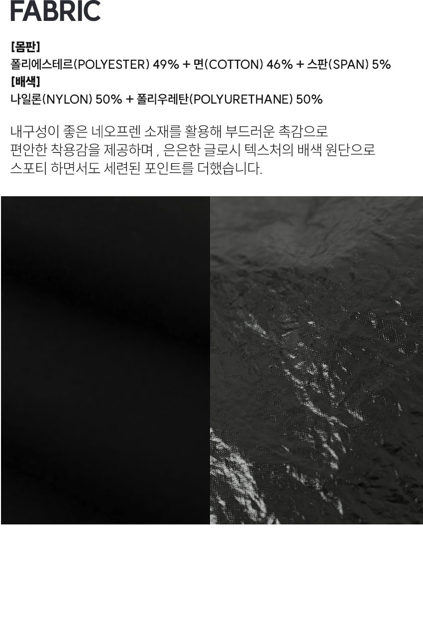 | 소재 | 몸판_폴리에스테르 49% + 면 46% + 폴리우레탄 5% 배색_나일론 50% + 폴리우레탄 50% |