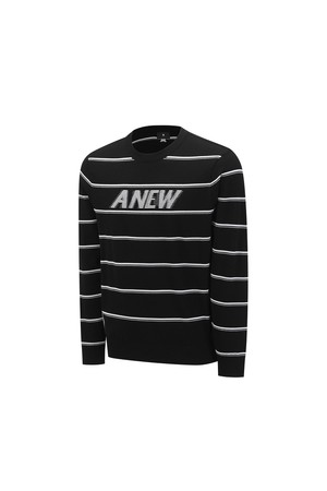 [ANEW GOLF] MEN STRIPE ROUND SWEATER_BK