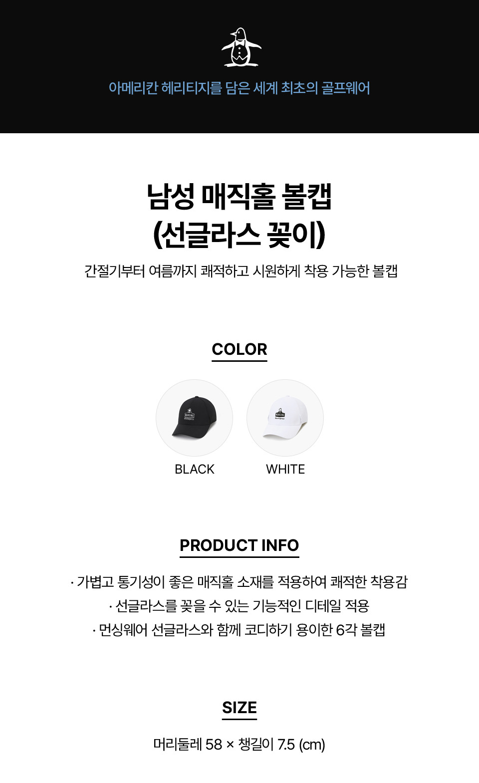 [먼싱웨어] 남성 매직홀 볼캡(선글라스 꽂이) 화이트 MR121MCP31