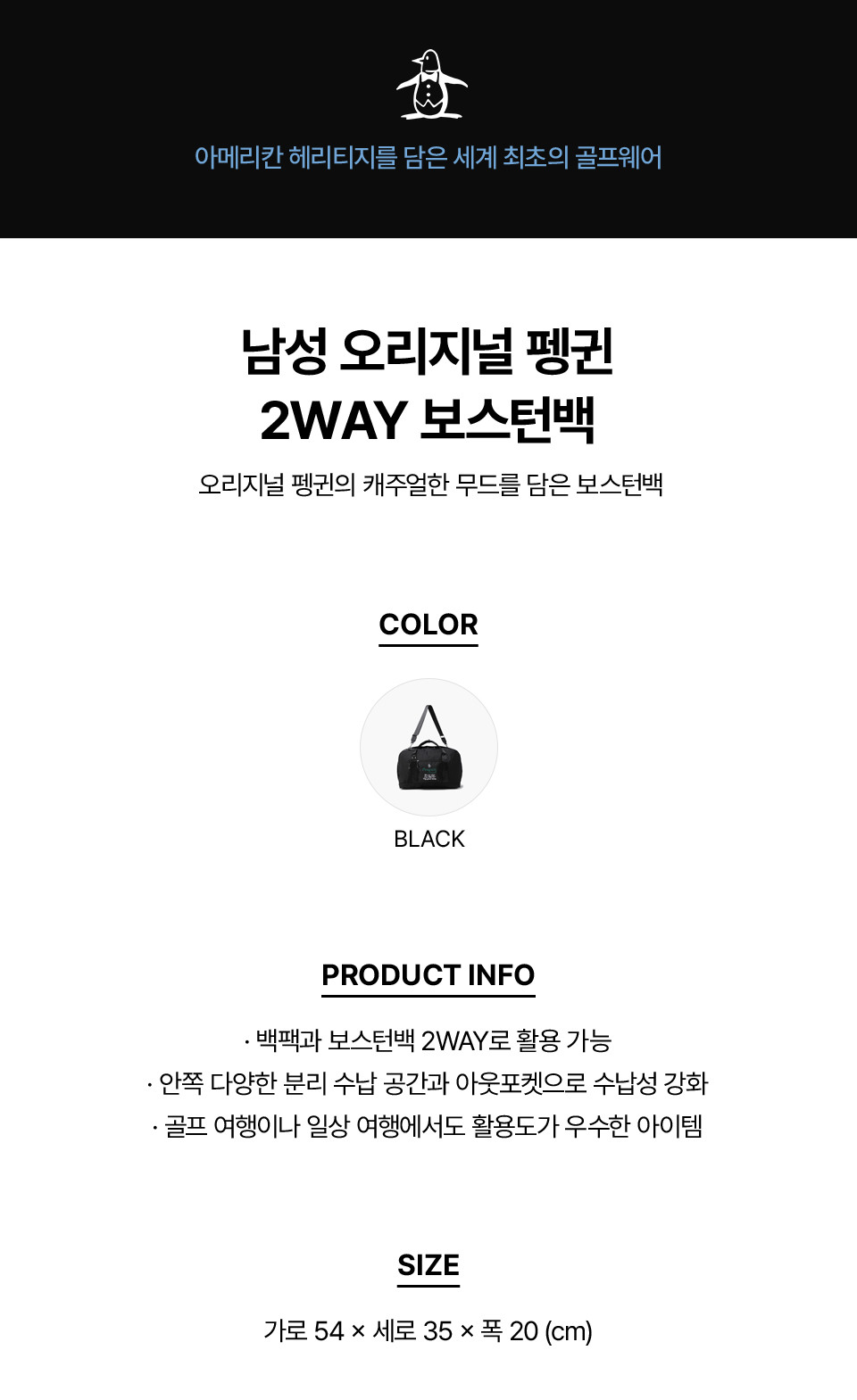 [먼싱웨어] 남성 오리지널 펭귄 2WAY 보스턴백 블랙 MR121PBB21