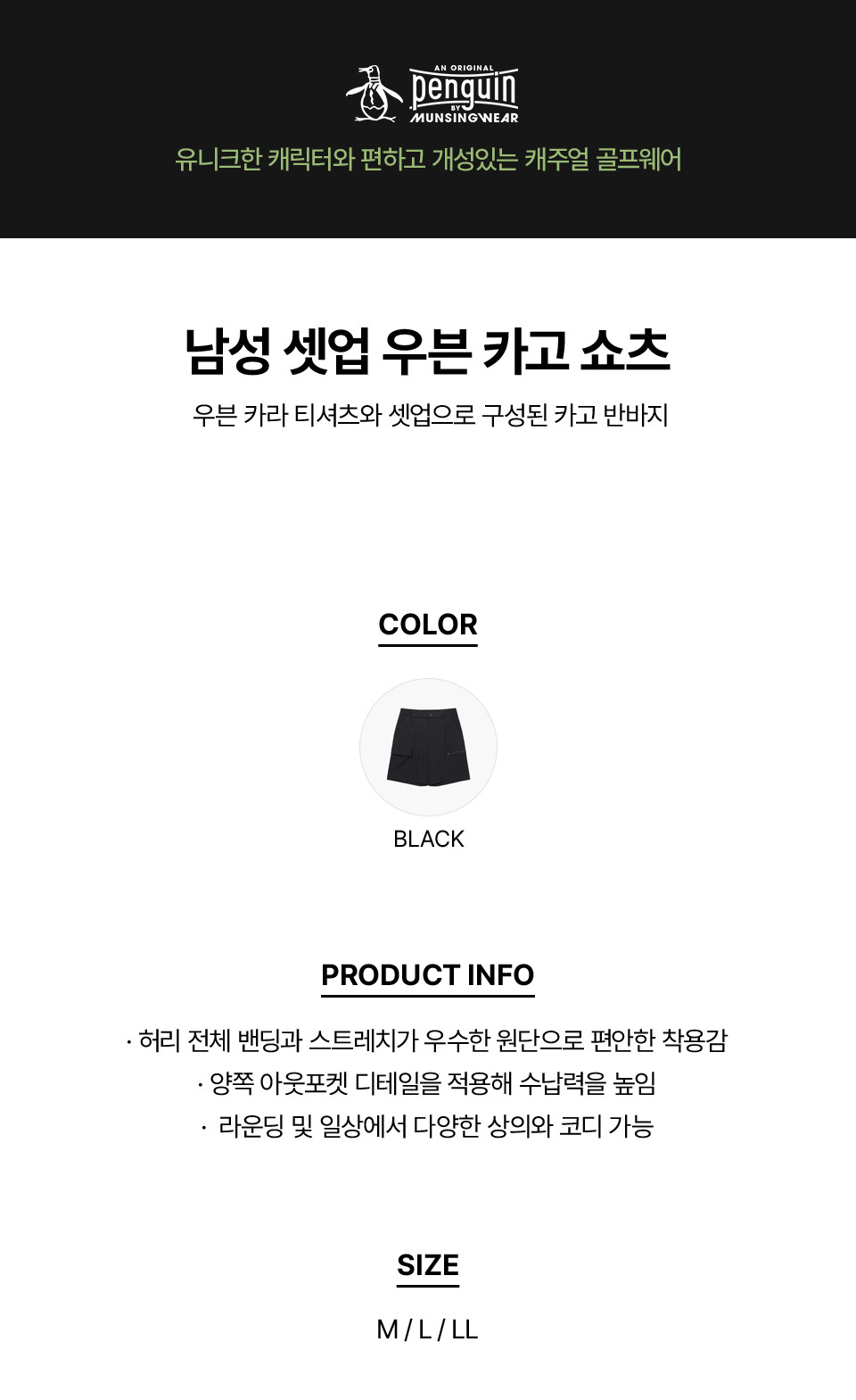 [먼싱웨어] 남성 셋업 우븐 카고 쇼츠 블랙 MR121PSP31