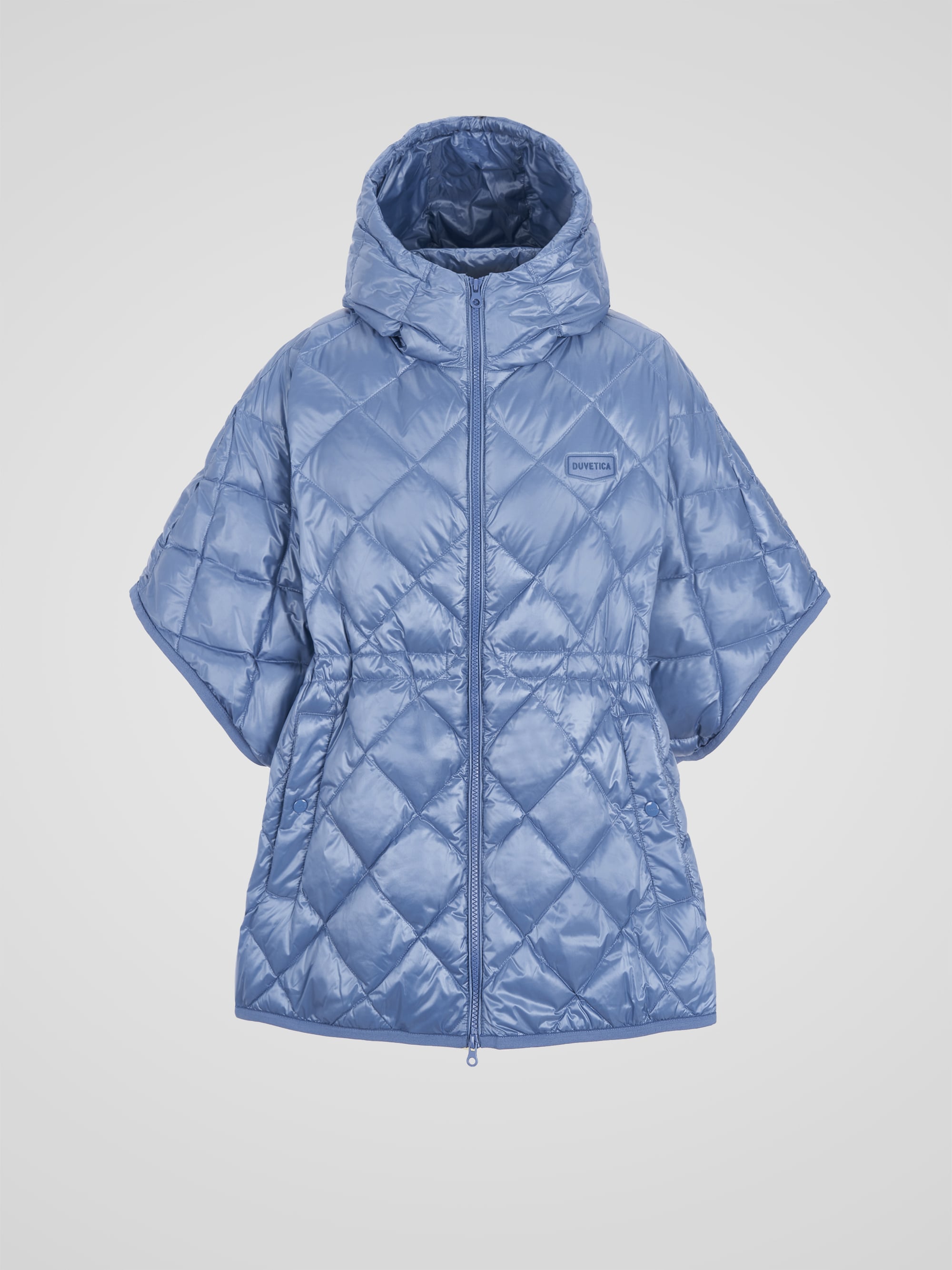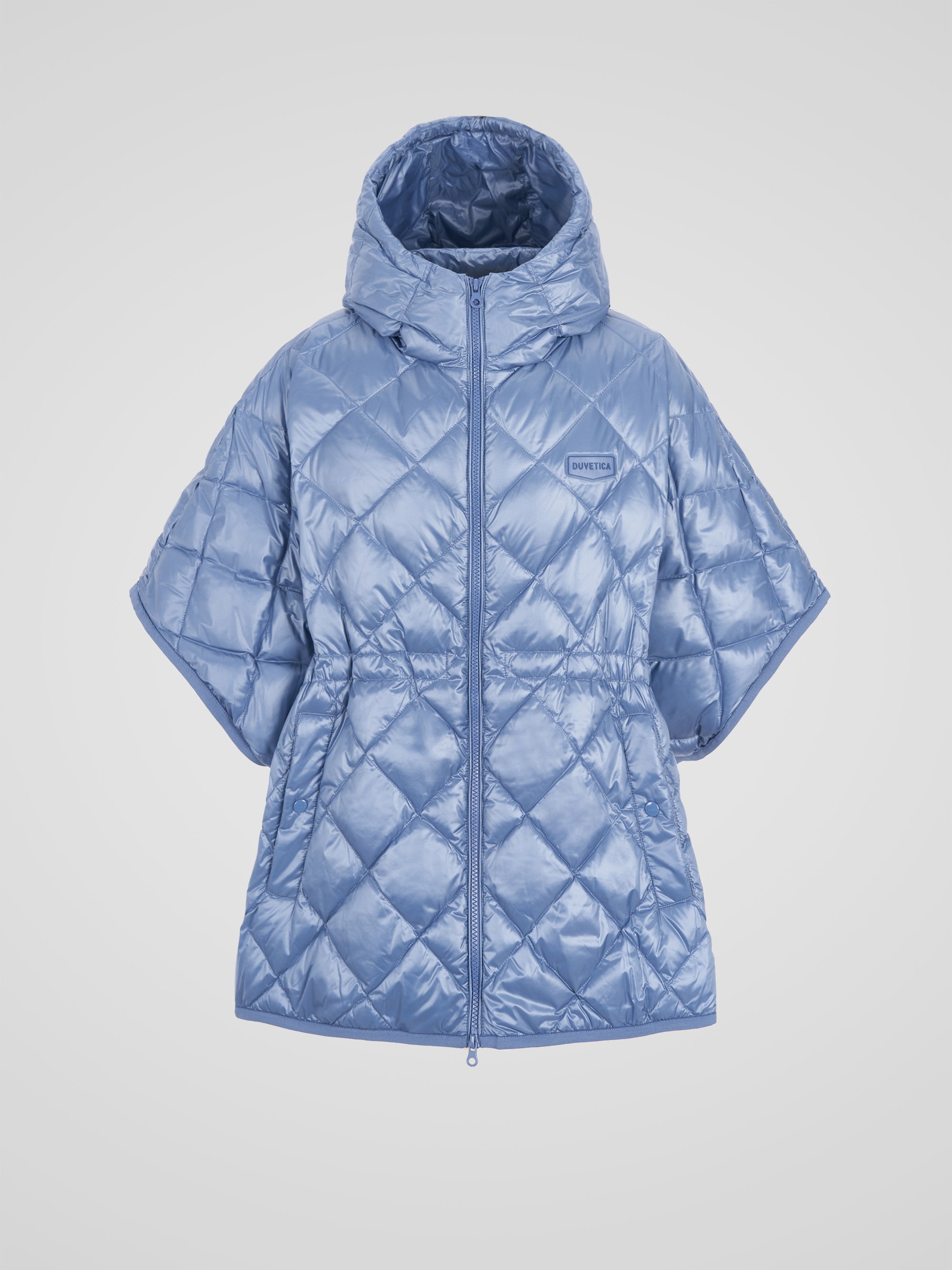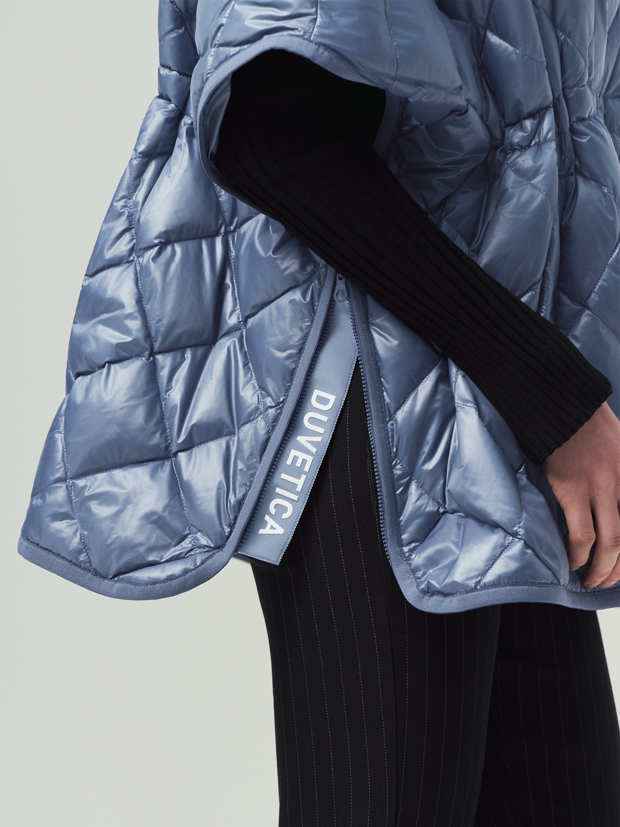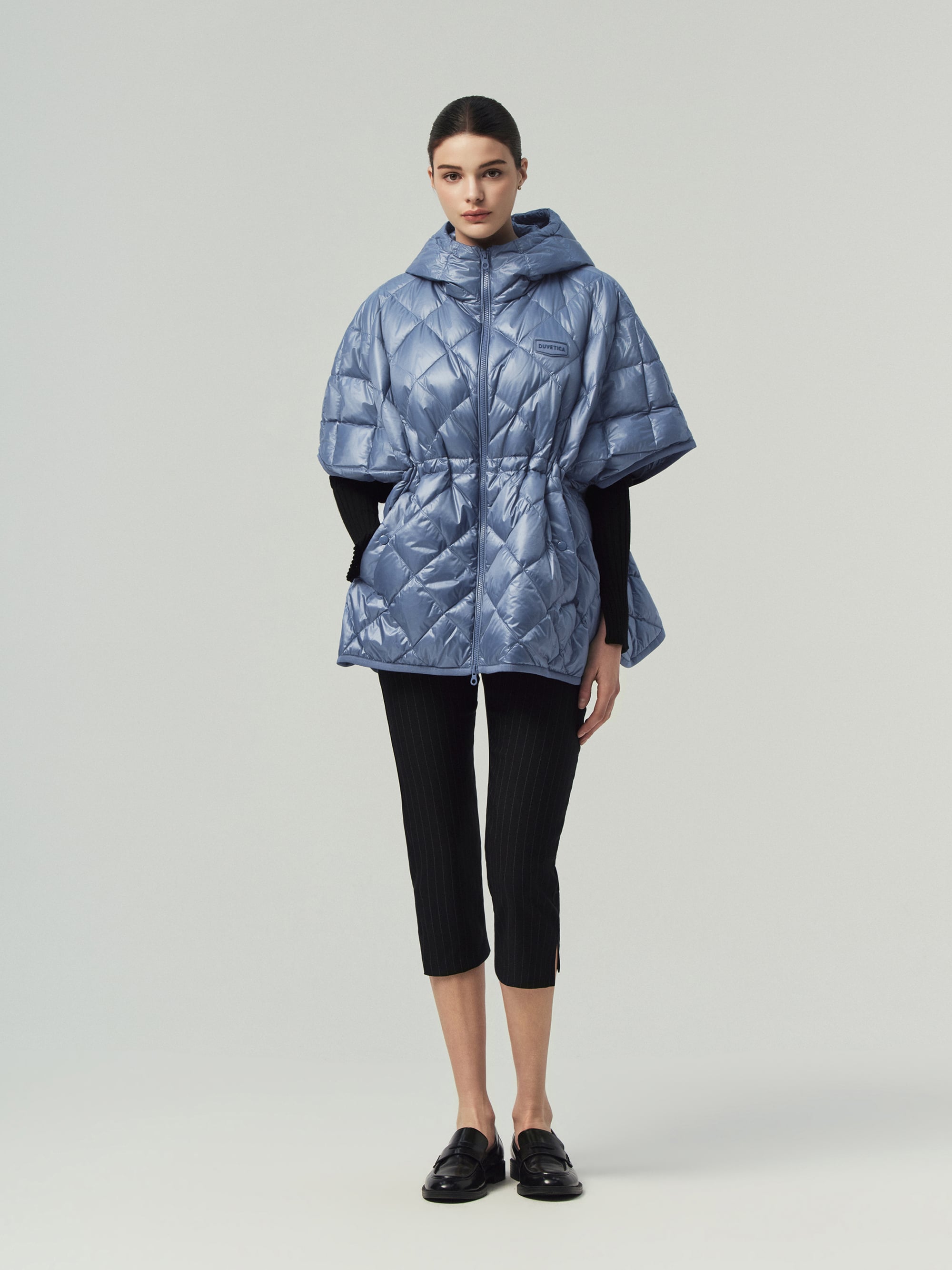 - 정형화된 다운자켓 형태가 아닌 판쵸 형태로 여성스러운 실루엣