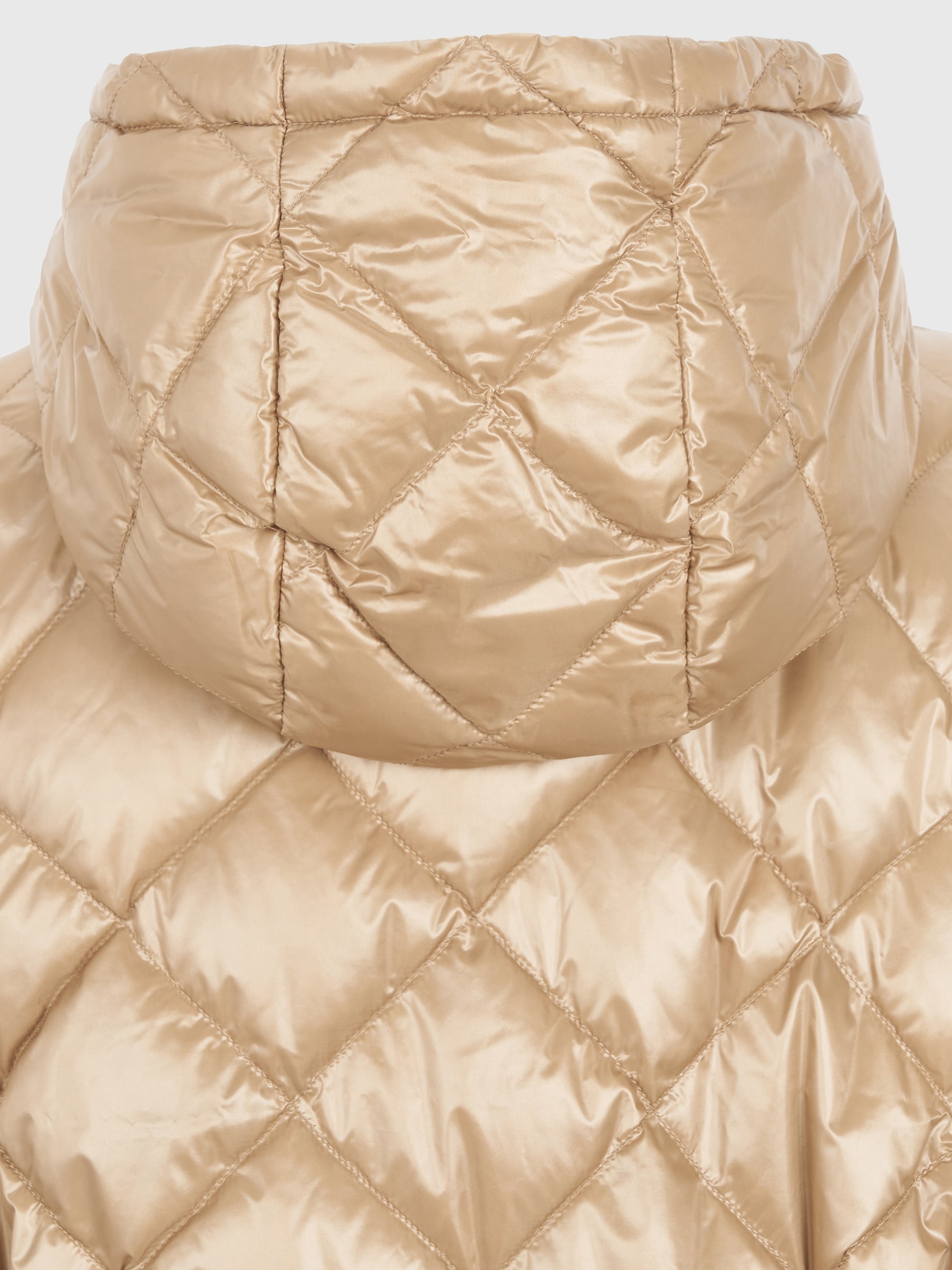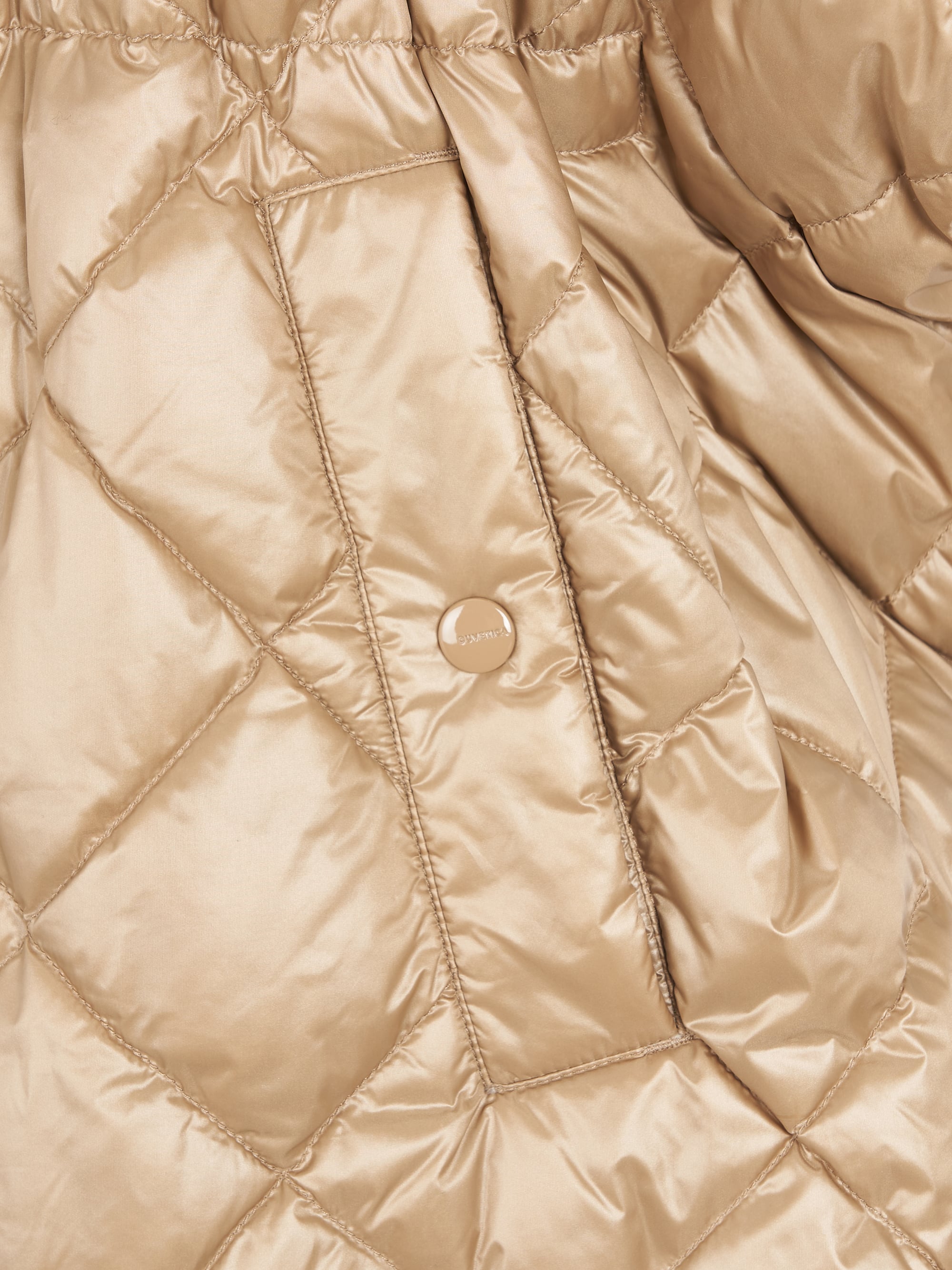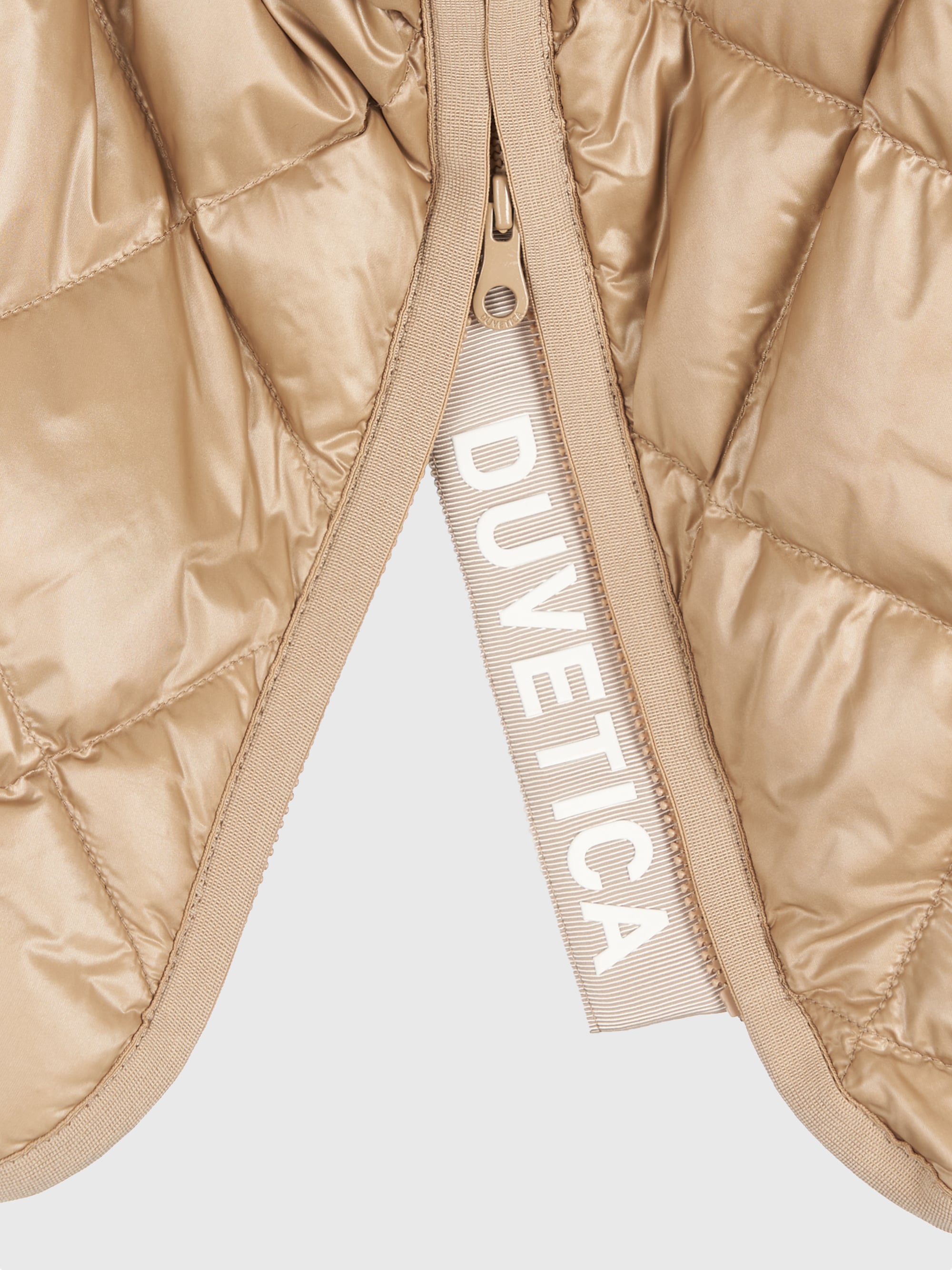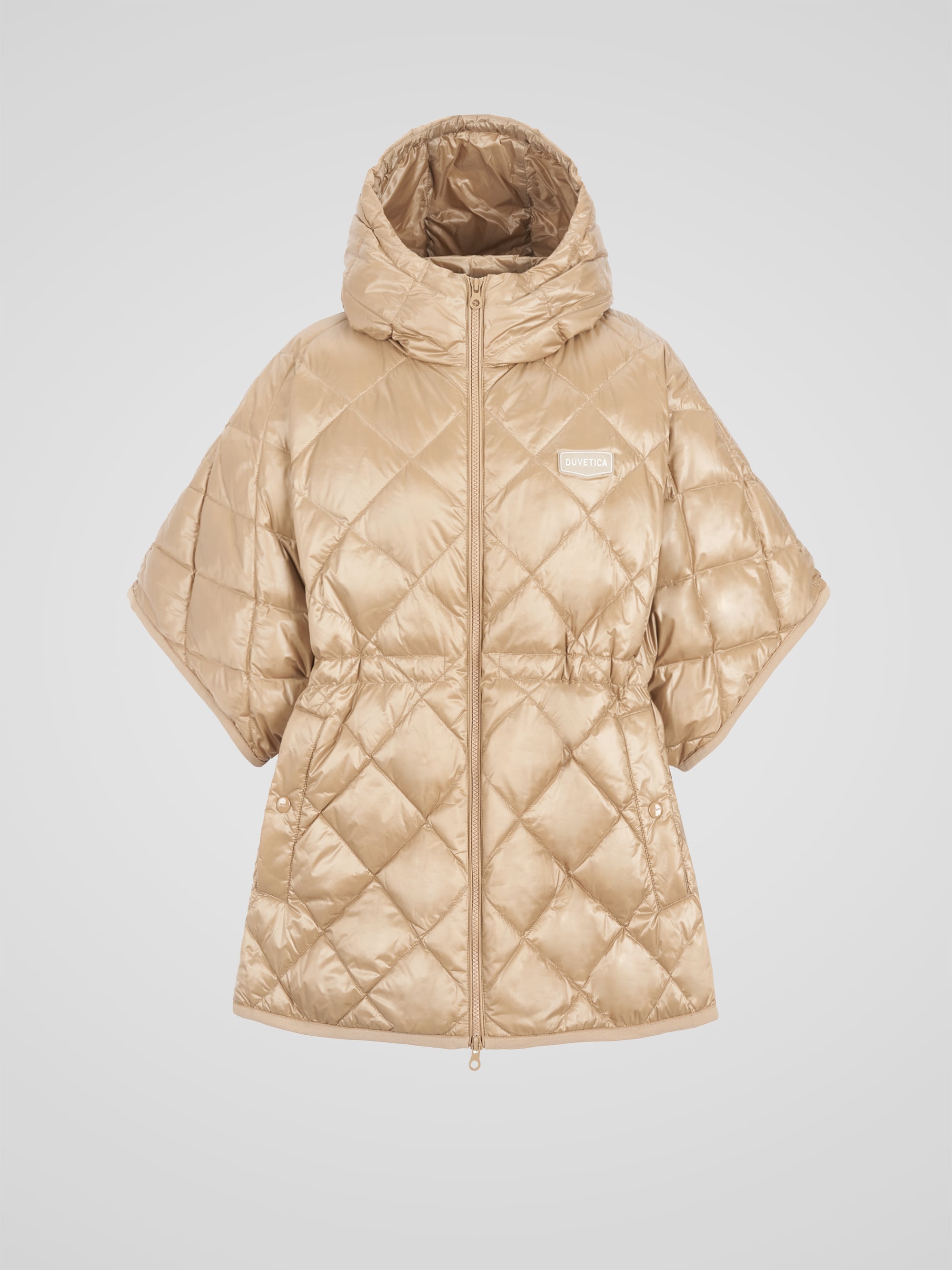 - 정형화된 다운자켓 형태가 아닌 판쵸 형태로 여성스러운 실루엣