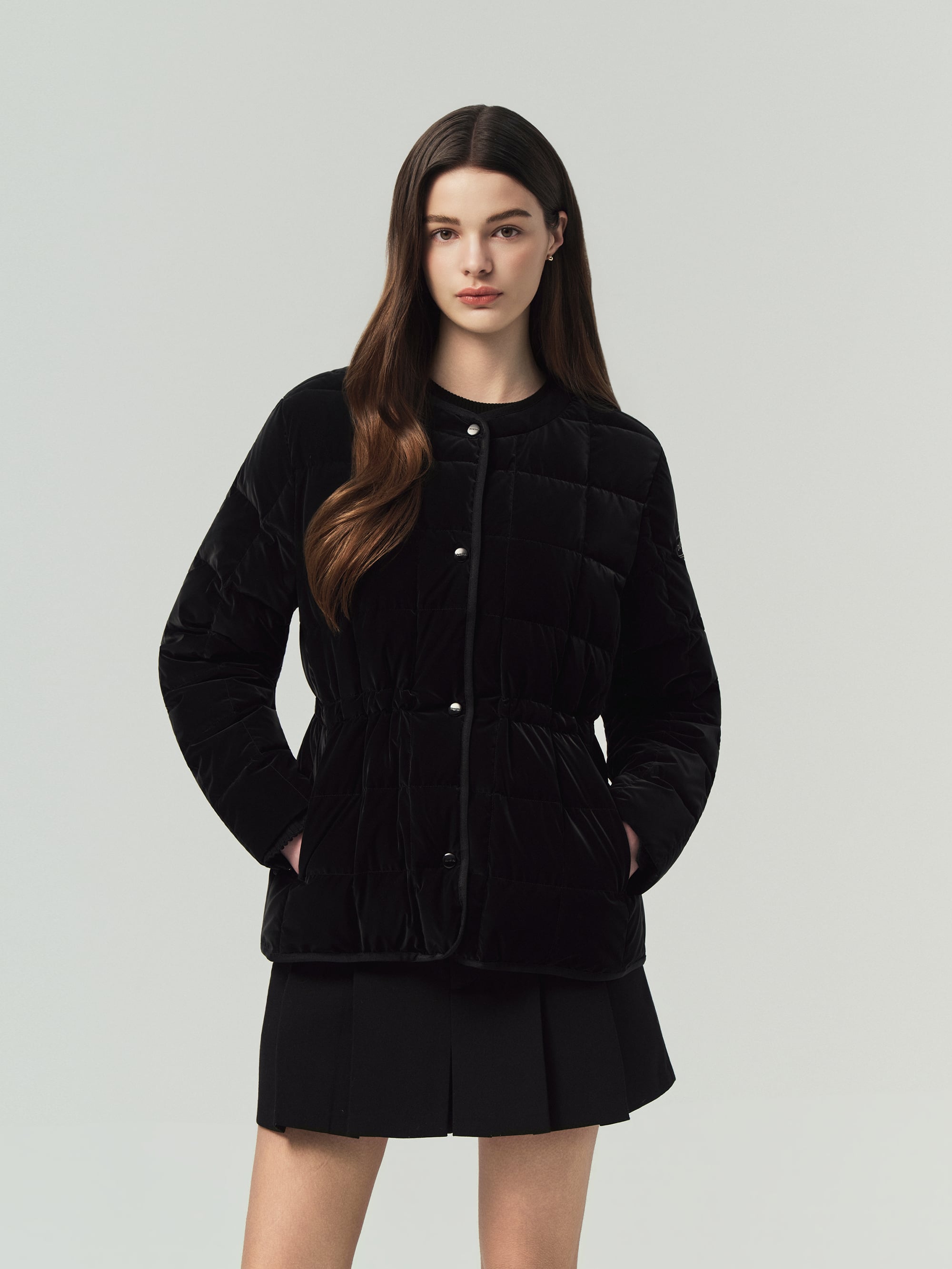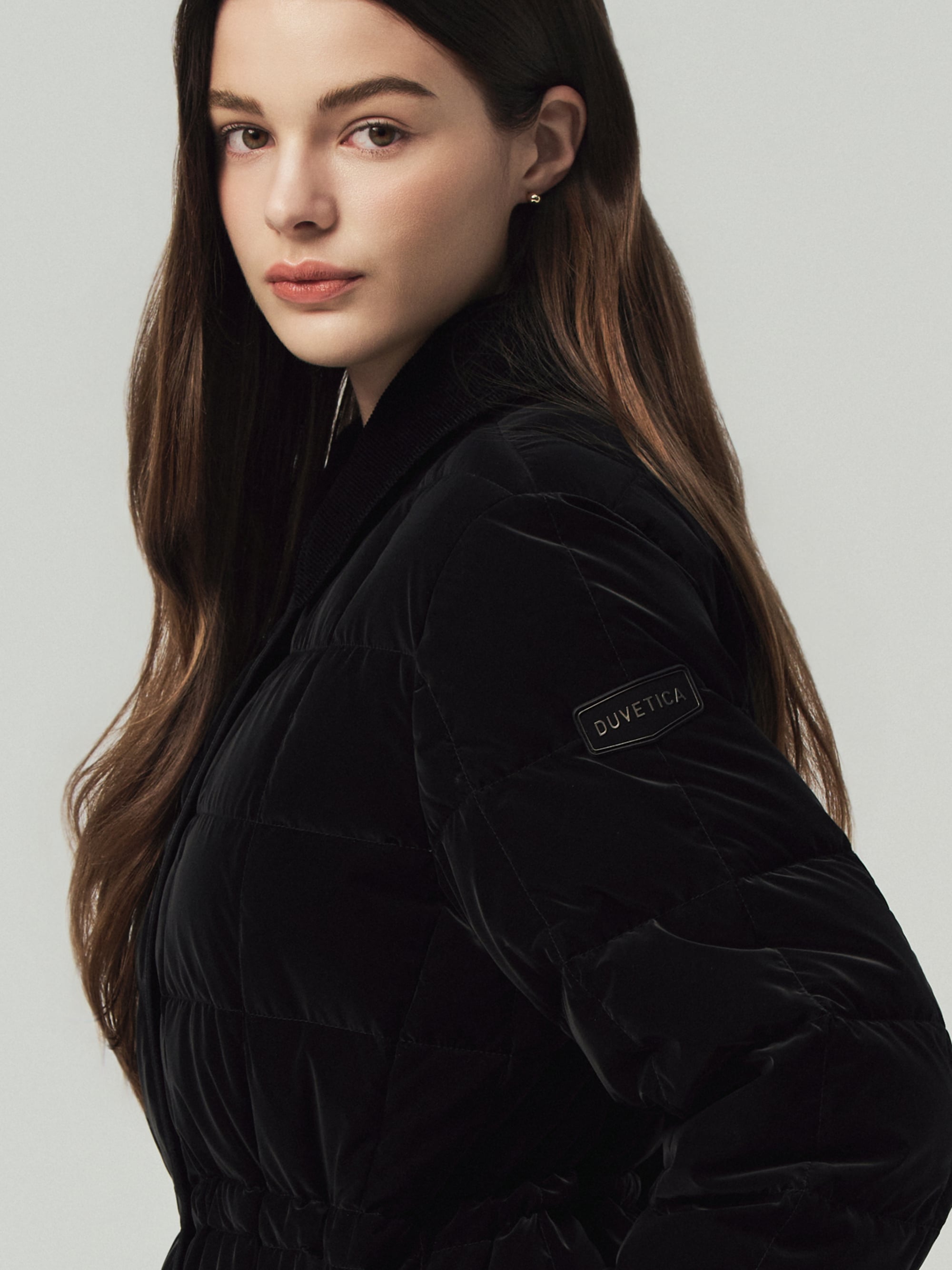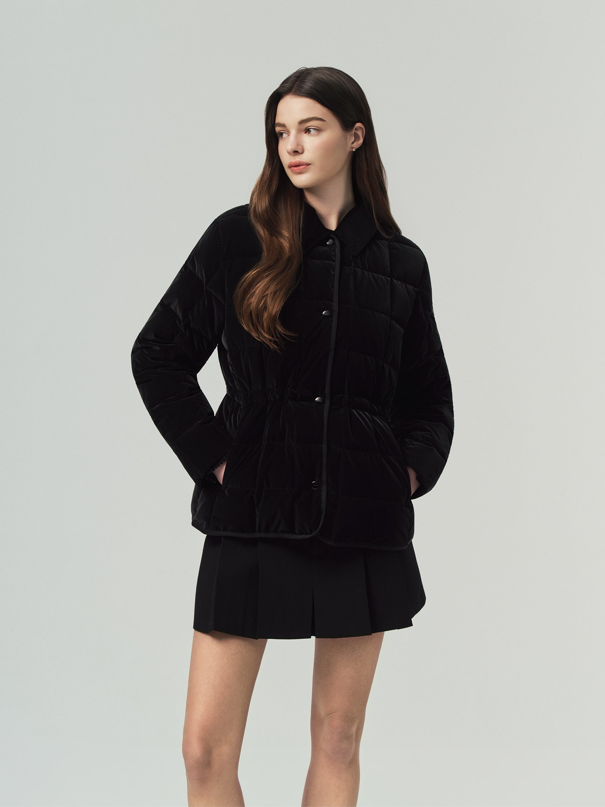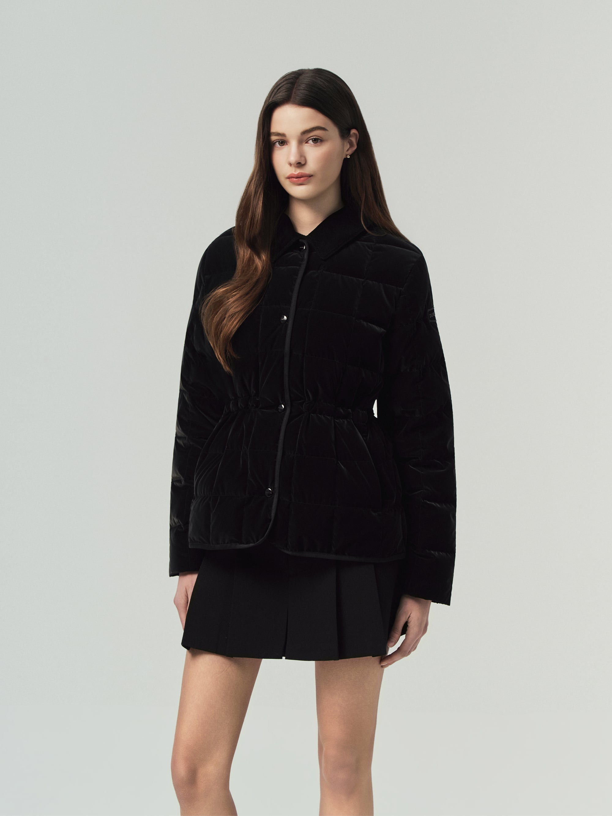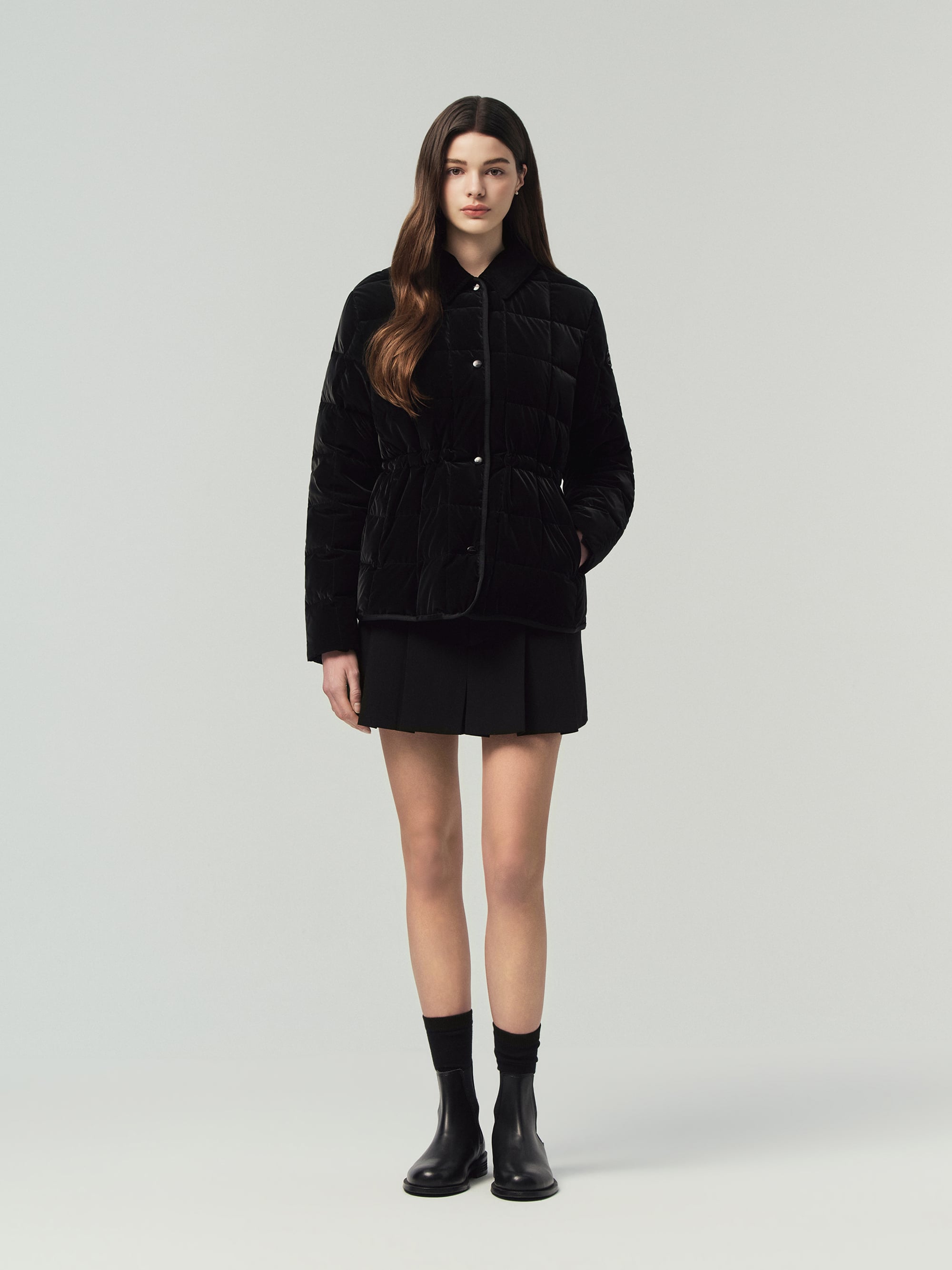 벨벳 퀼팅 카라 배색 경량 다운자켓
