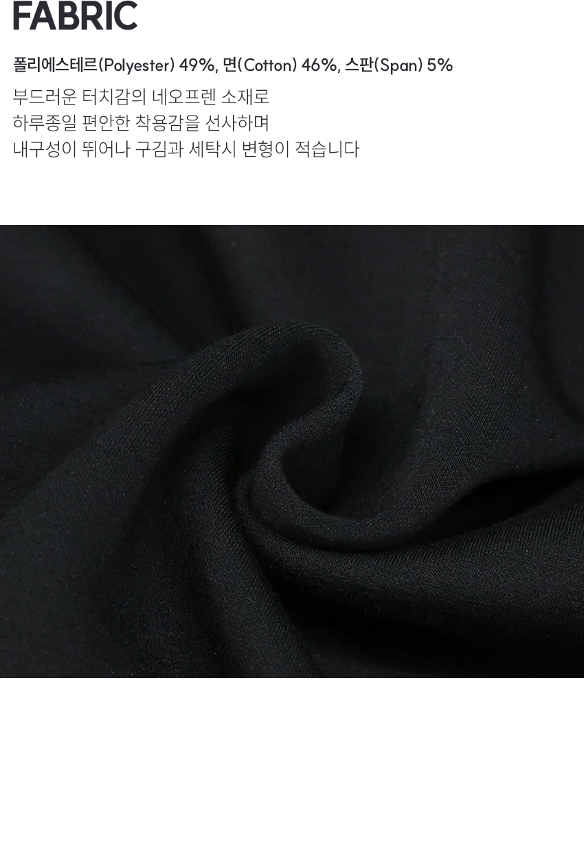 | 소재 | 폴리에스테르 49% + 면 46% + 스판 5% |