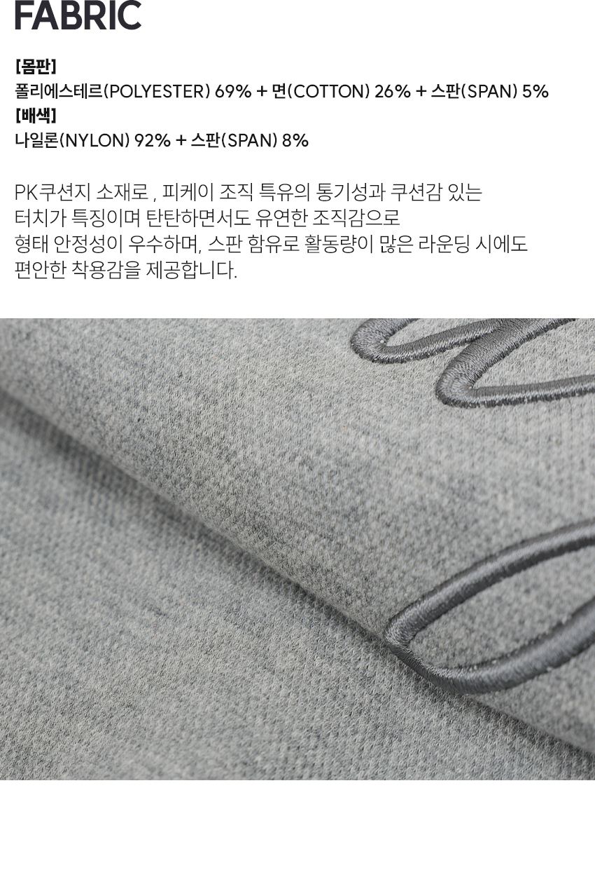 | 소재 | 몸판_폴리에스테르 69% + 면 26% + 스판 5% 배색_나일론 92% + 스판 8% |