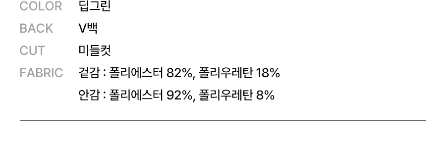 | 소재 | 겉감: 폴리에스터 82%, 폴리우레탄 18% / 안감: 폴리에스터 92%, 폴리우레탄 8% |