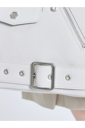 o 라이더 자켓 모티브 디자인 벨티드 디테일과 옆선 지퍼 장식을 적용하여 구현한 유니크한 외관