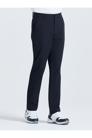 이 팬츠의 진짜 매력은 안쪽에 숨어 있습니다. 허리 뒷면 안감에 통기성이 좋은 스트라이프 메쉬 밴드를 적용하여, 겉으로는 깔끔한 정장 바지처럼 보이지만 속은 트레이닝복처럼 편안하고 쾌적합니다. 로고 자수와 견고한 벨트 고리로 세련된 포인트와 실용성을 모두 챙겼습니다.