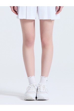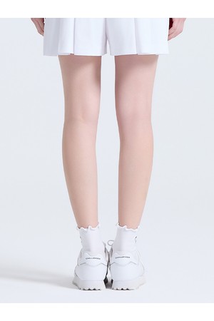 발목 라인이 예뻐 보이는 양말입니다. 양말 입구 끝단에 물결 모양의 셔링 주름을 넣어, 마치 리본이나 프릴처럼 사랑스럽고 여성스러운 분위기를 연출합니다.
