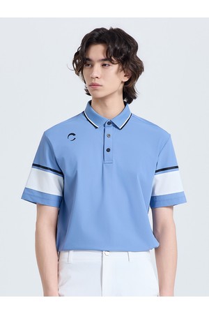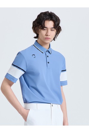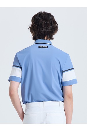 남성 소매 블록 배색 카라 반팔 티셔츠 미디엄블루