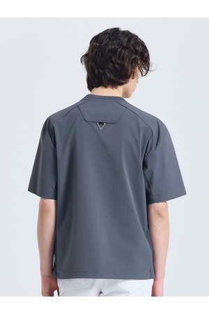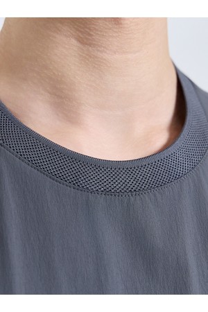 남성 메쉬 스트링 라운드 반팔 우븐탑 차콜