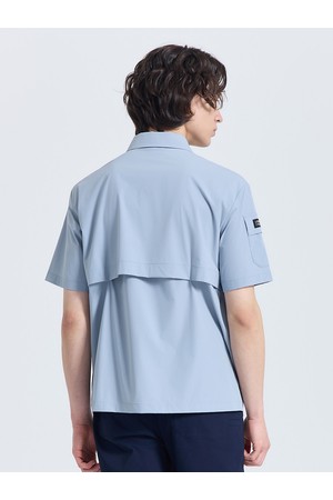 남성 인포켓 소매 프린트 카라 반팔 우븐탑 스톤그레이