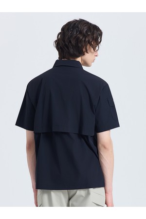 남성 인포켓 소매 프린트 카라 반팔 우븐탑 블랙