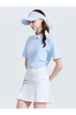 시각적인 청량감을 주는 화이트 배색 카라는 단정한 인상과 함께 스포티한 분위기를 동시에 연출합니다. 변형이 적은 니트 조직의 시보리 카라를 사용하여 반복되는 스윙 동작에도 깔끔한 형태를 유지합니다.