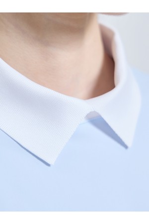 여성 슬림핏 니트 카라 반팔 티셔츠 스카이블루