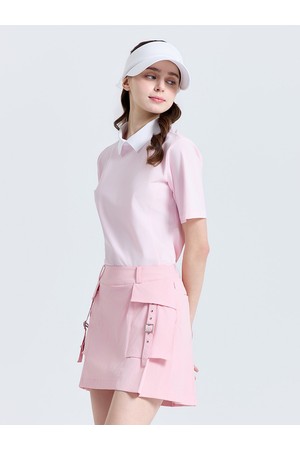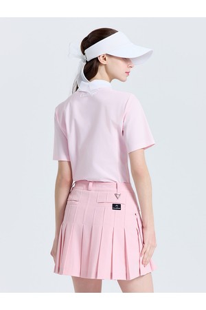 여성 슬림핏 니트 카라 반팔 티셔츠 라이트핑크