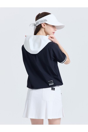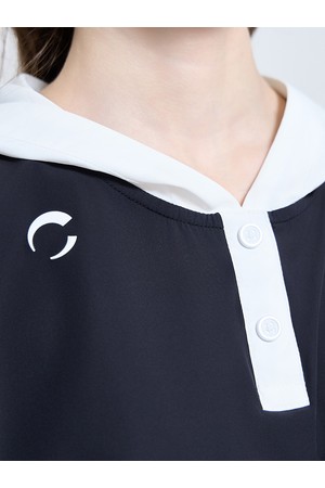 필드와 일상의 경계를 허무는 후드 반팔 우븐탑입니다. 넉넉한 사이즈의 후드 디테일이 자외선으로부터 목을 보호해 줄 뿐만 아니라, 밋밋한 코디에 활력을 불어넣어 캐주얼하고 영한 분위기를 연출합니다.