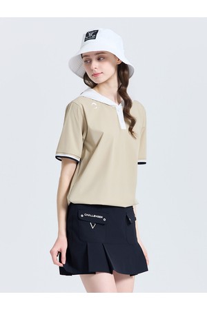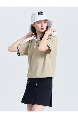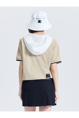 여성 베이직 후드 반팔 우븐탑 베이지