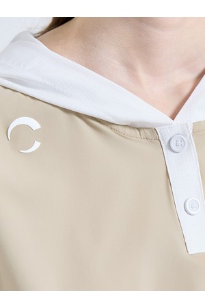 필드와 일상의 경계를 허무는 후드 반팔 우븐탑입니다. 넉넉한 사이즈의 후드 디테일이 자외선으로부터 목을 보호해 줄 뿐만 아니라, 밋밋한 코디에 활력을 불어넣어 캐주얼하고 영한 분위기를 연출합니다.