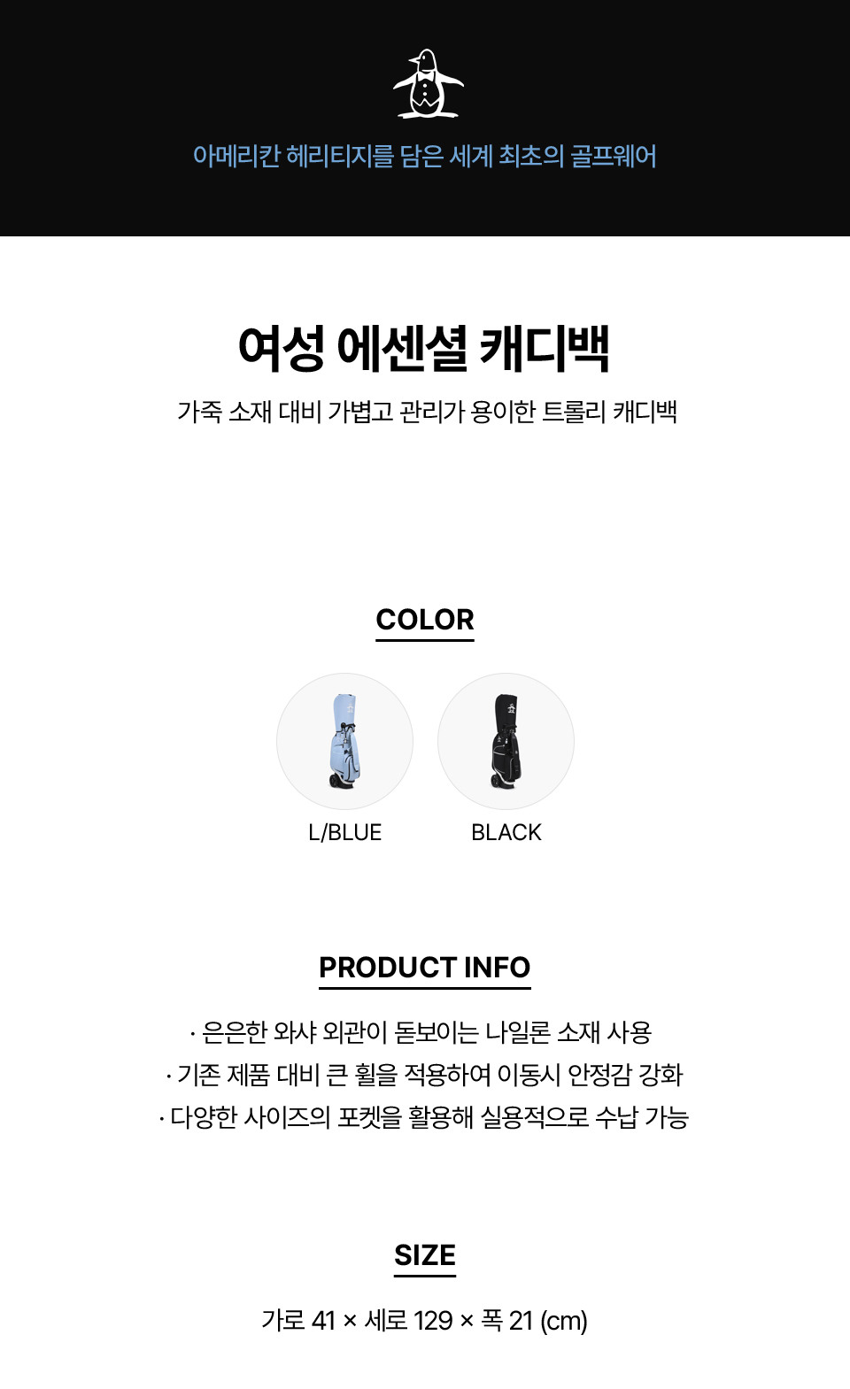 | 크기 | 실측(FR)사이즈(cm)-가로41 세로129 폭21 중량5095g |